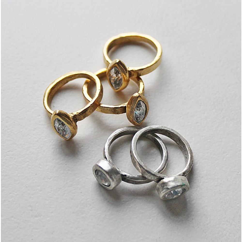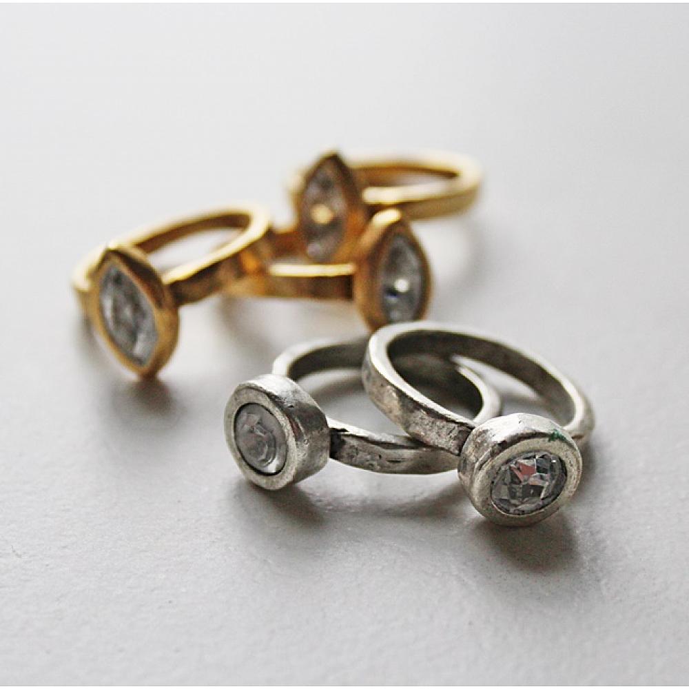 * Take your pick . . . a gold marquis shaped Rhinestone or a silver round Rhinestone ring. All rings are size 7 and are made of a slightly hammered gold tone and silver metal. The perfect adornment for everyday or a night out.