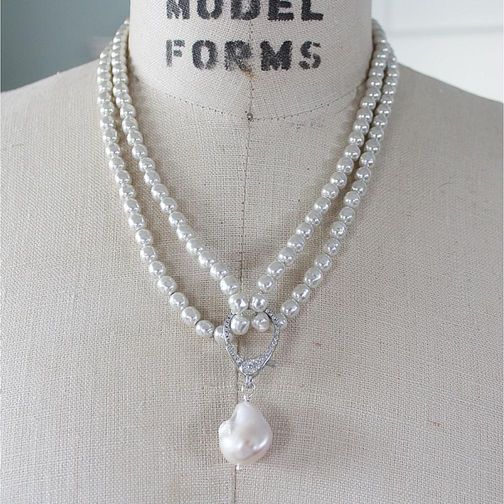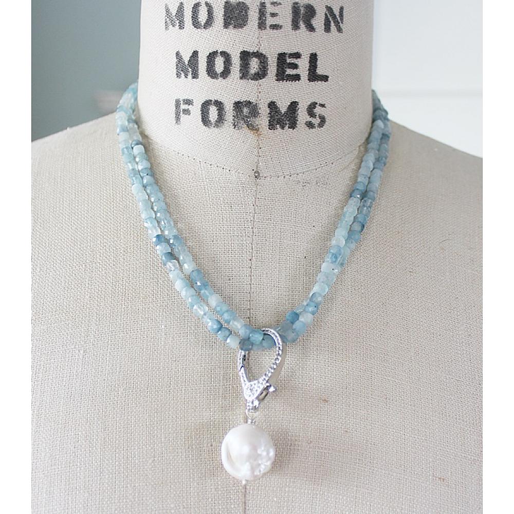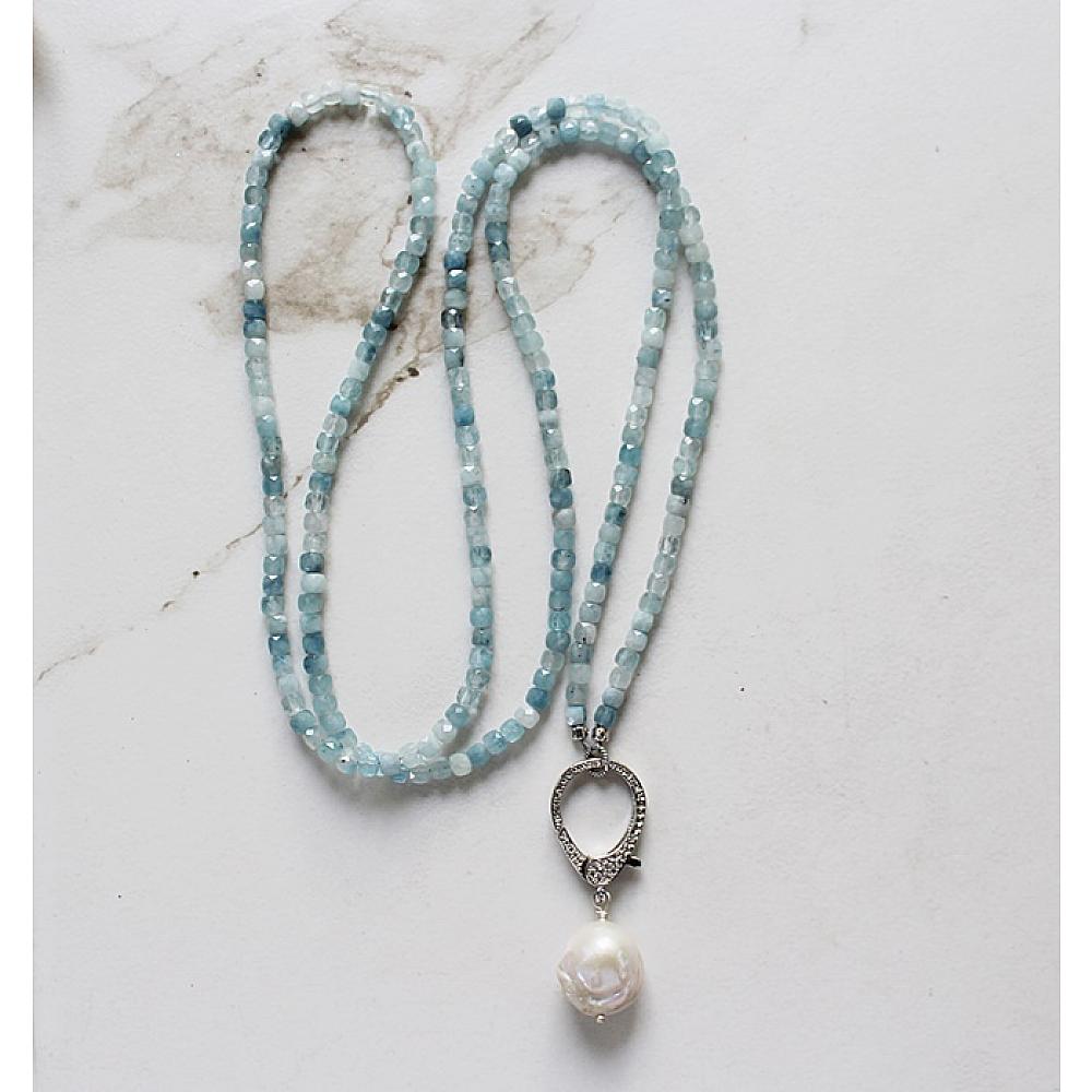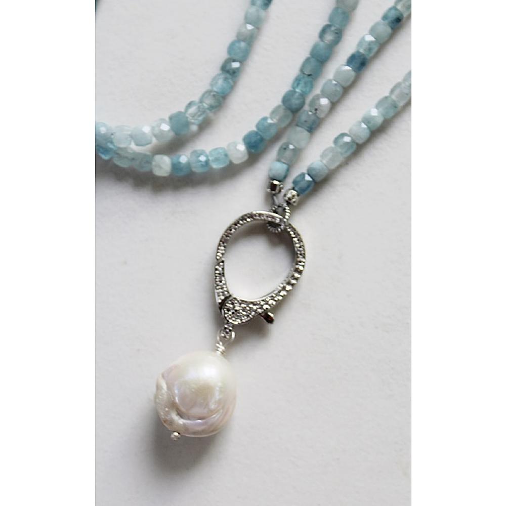 * Let me just say, this one is probably my most favorite of the Holiday Collection. Your choice . . . a long length of Vintage Glass Pearls or Aquamarine faceted cubes come together on this ever so versatile necklace. Wear it long with or without the CZ studded clasp with a gorgeous Baroque Pearl, or wear it doubled up with the clasp as the connector, or wear it all by itself. The clasp is sterling silver, studded with CZ's for a bit of sparkle and shine.