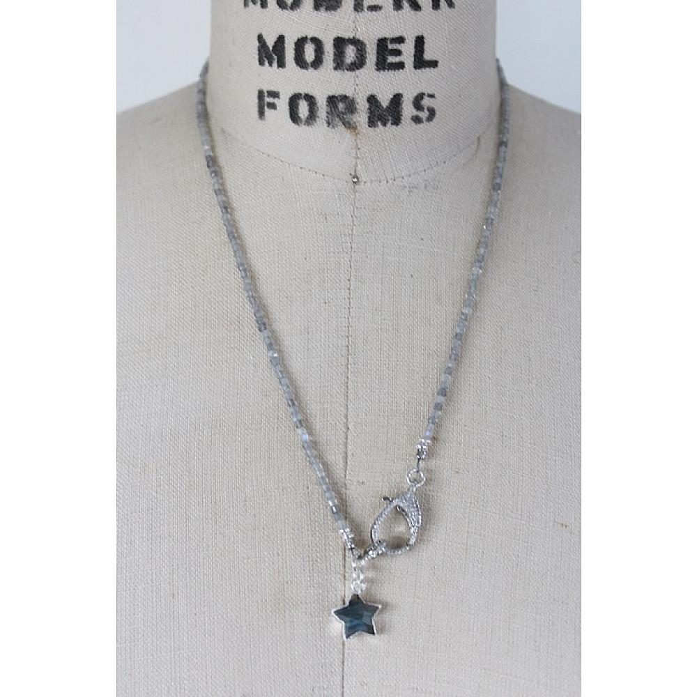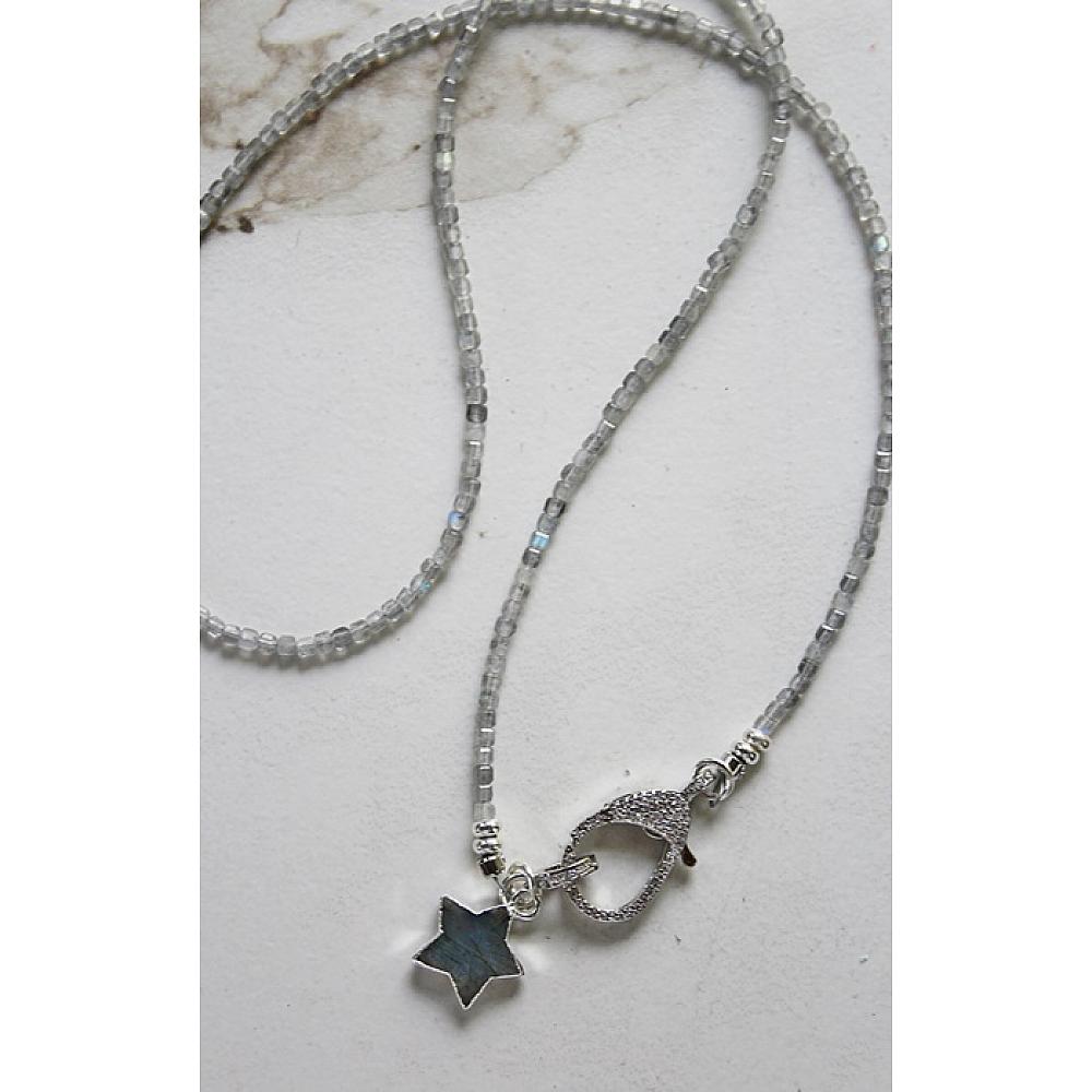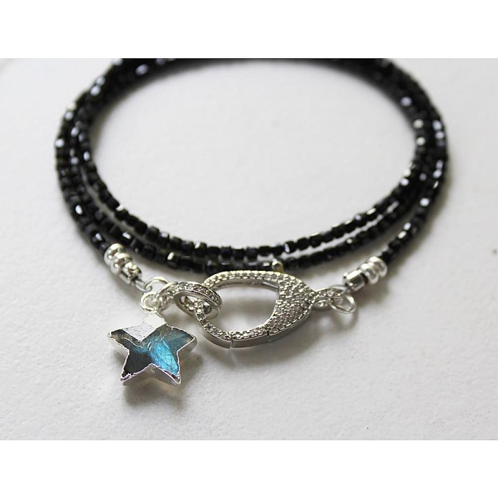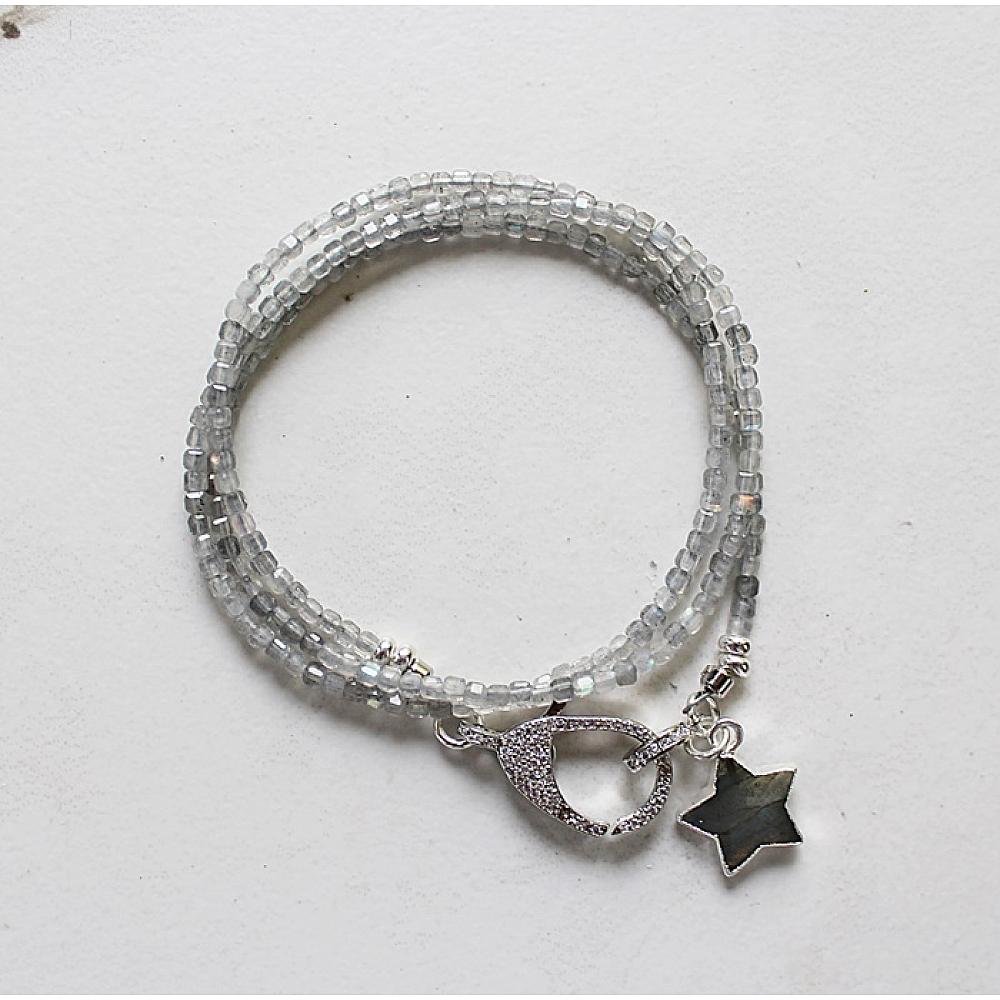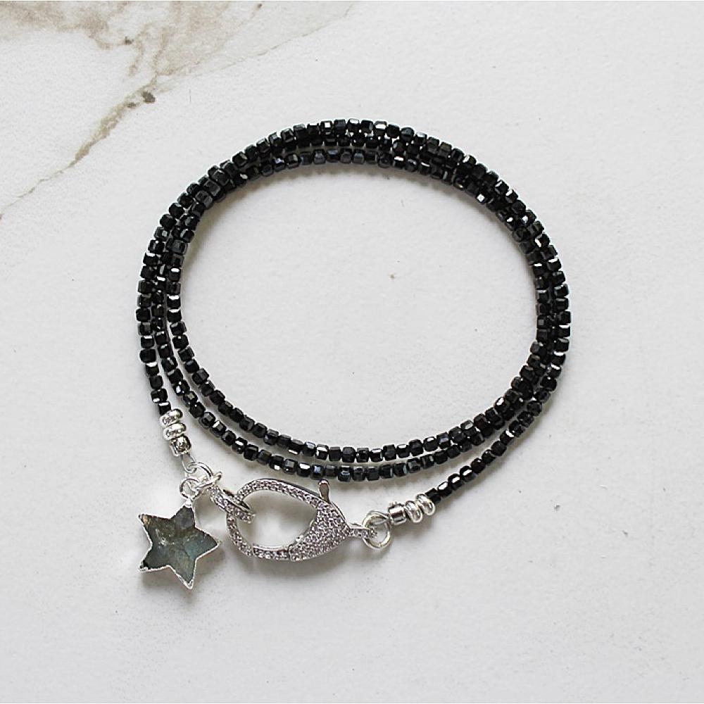 * Another fun and convertible bracelet/necklace. Wear it as a triple wrap bracelet or a 21" necklace. The stunner on this first is the beads . . . faceted cubes in labradorite or black tourmaline are stung on heavy duty wire and is finished off with a gorgeous, CZ studded clasp. Both come with a sweet labradorite star that will most definitely by the STAR of your holiday ensemble. The clasp is sterling silver with CZ's.