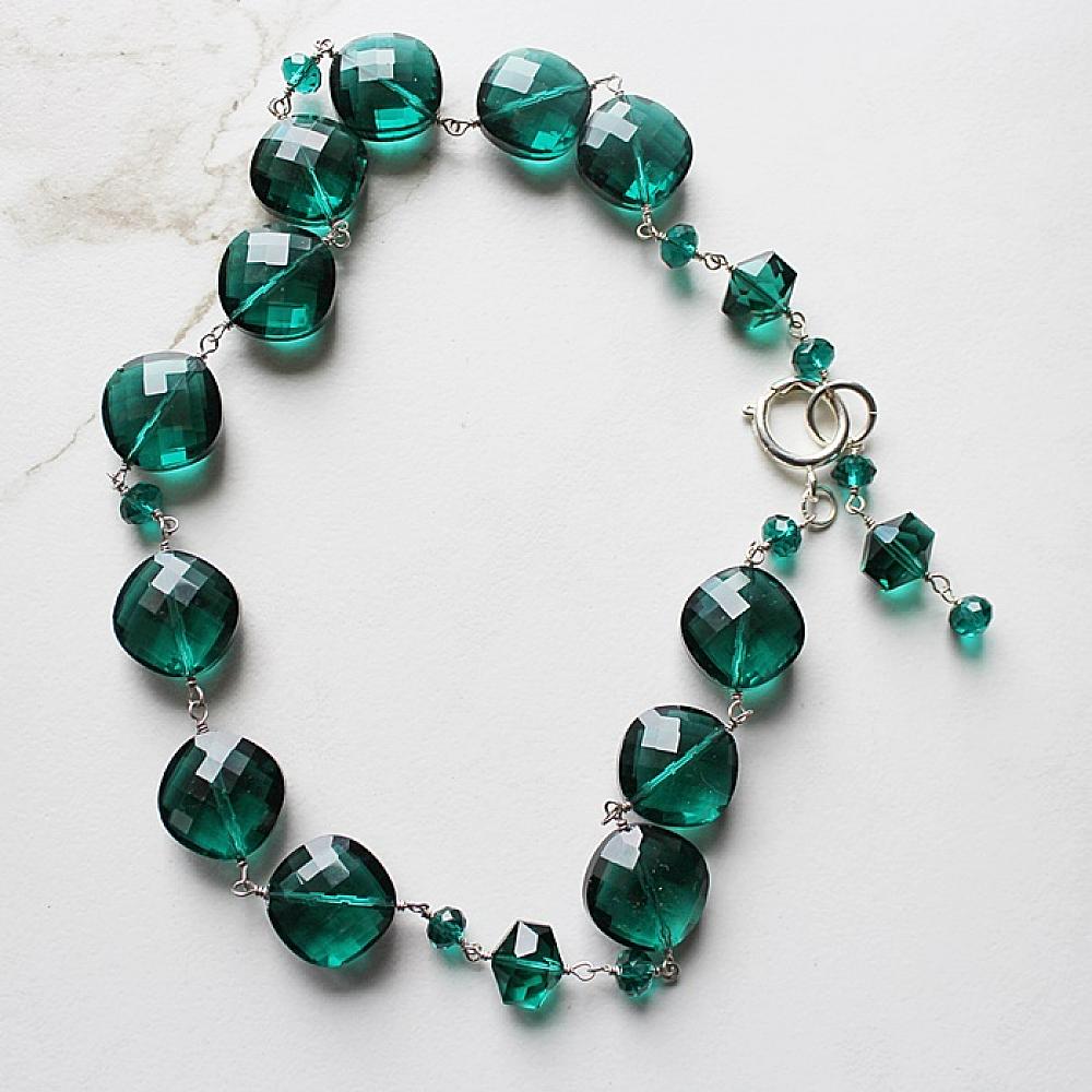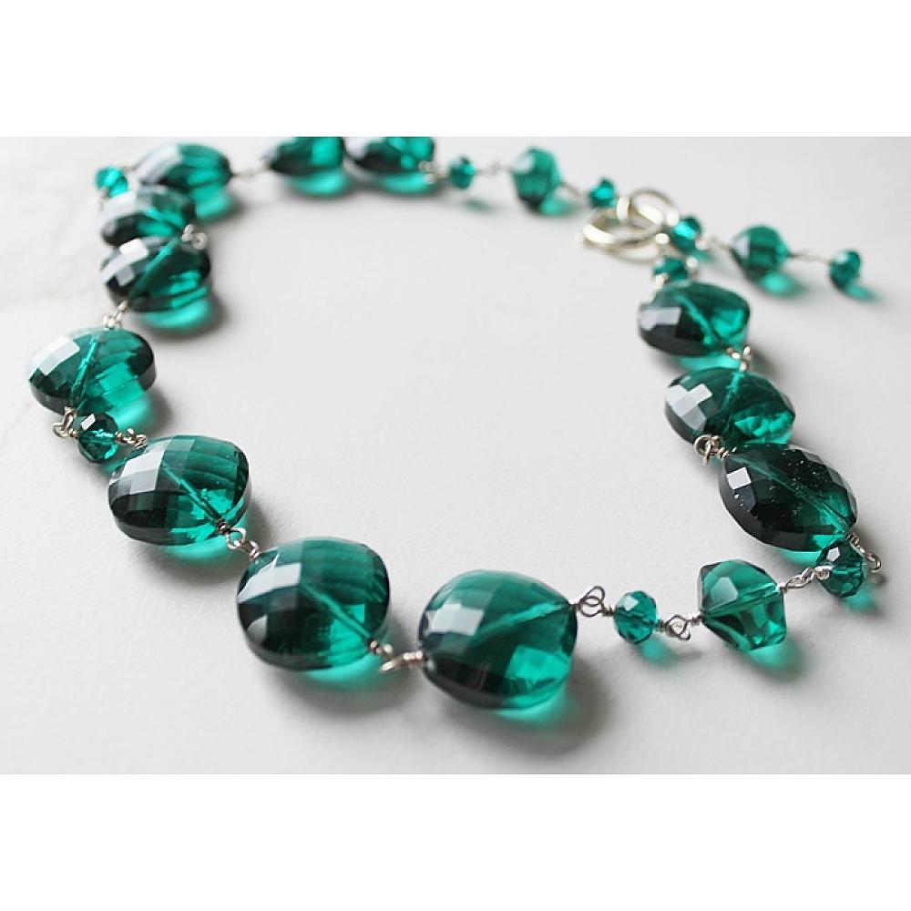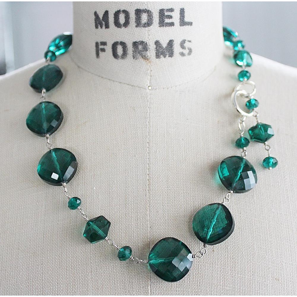 * This one is a beauty . . . the color green on this statement necklace is fabulous. It's the perfect winter, holiday, Christmas necklace. I've strung the beads on heavy duty wire and added a large round lobster clasp. I love the look of the dangle offset, but can be worn as a lariat or have the dangle in the back. Your choice. Just gorgeous.