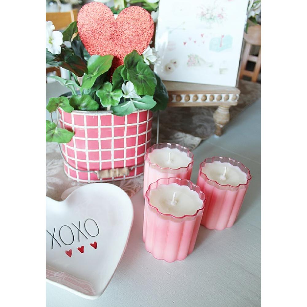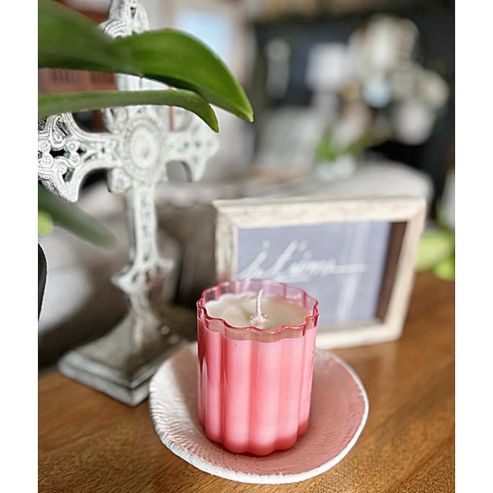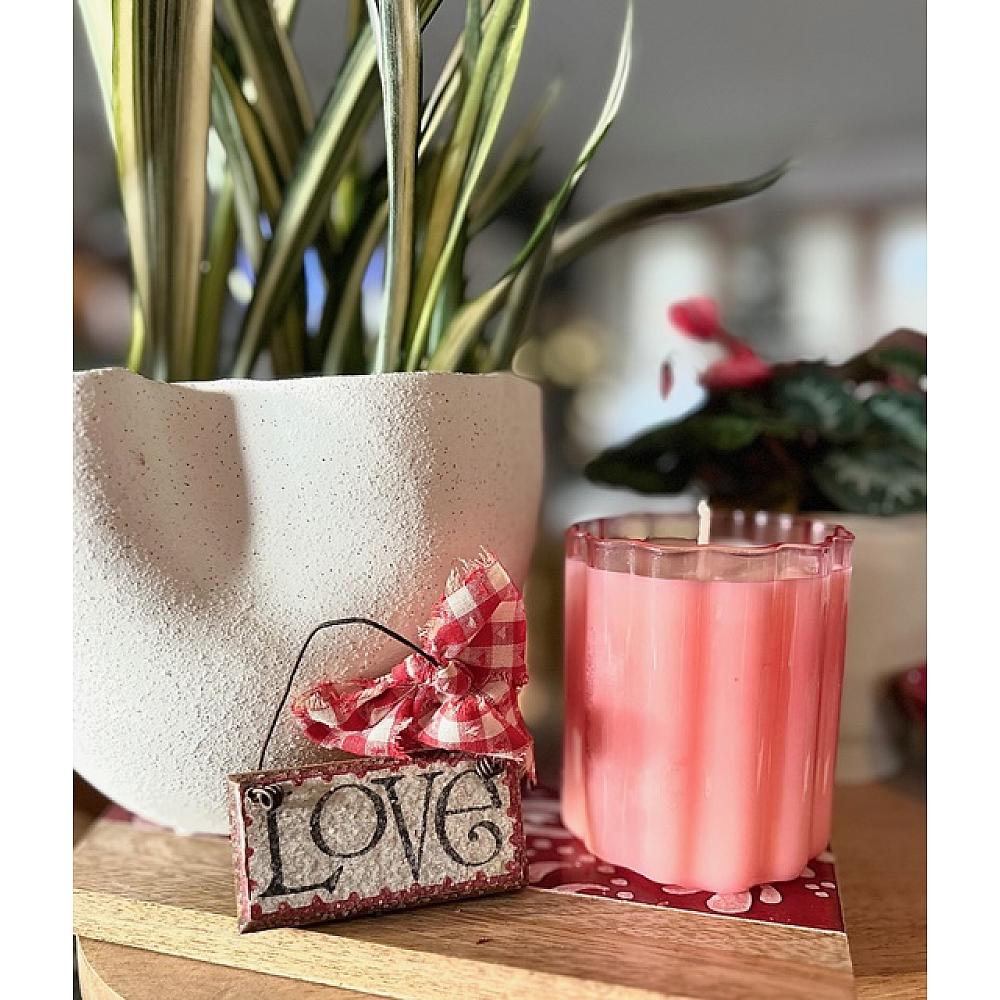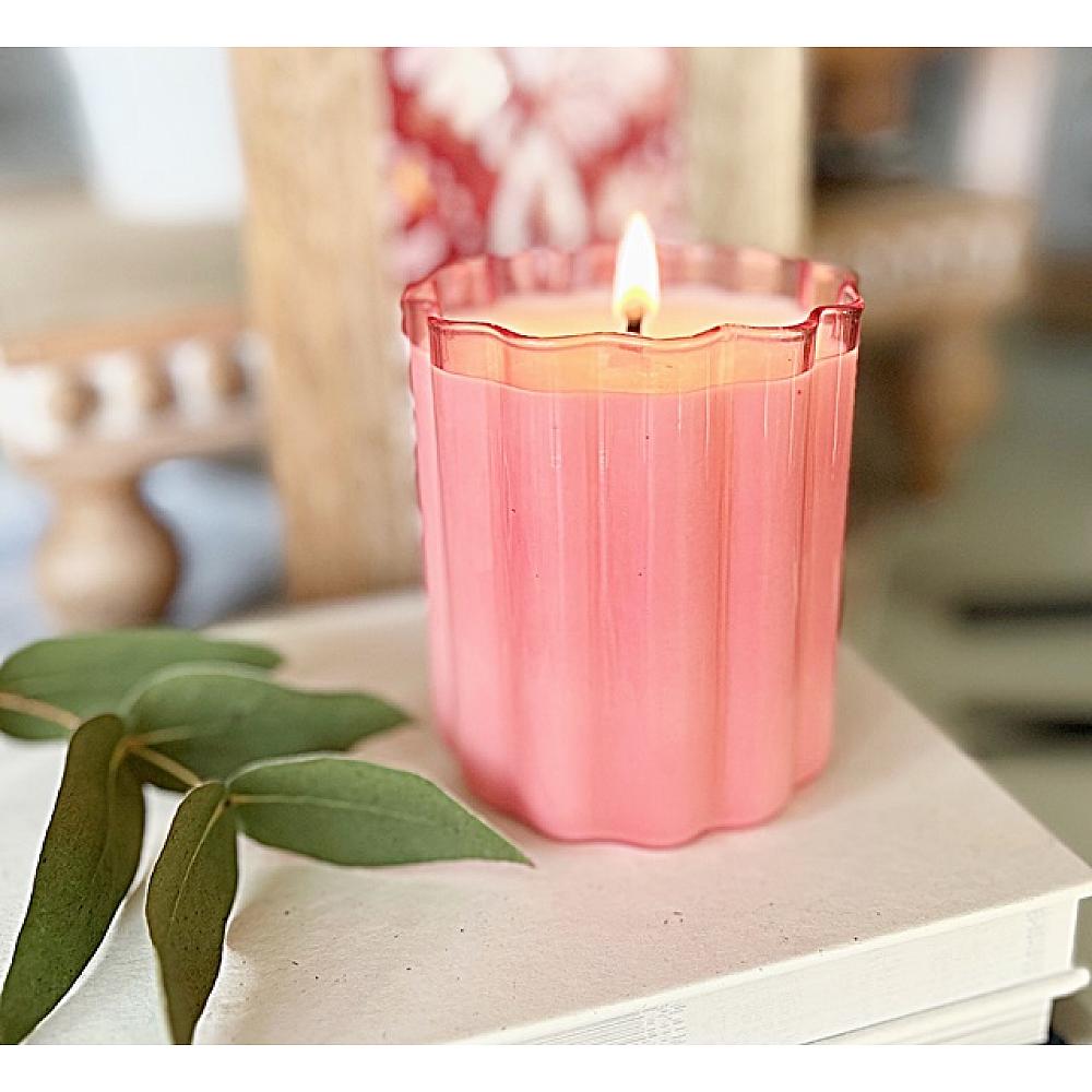 * This beauty makes me smile . . . from the ruffled top of the glass, to the delightful hue of pink. It's truly the perfect candle to usher in the LOVE Season. Inviting layers of crushed pistachio and festive blood orange lead into a confection of silky amaretto and lavender rounded by a base accord of soft heliotrope, creamy almond and tonka bean. It's couldn't be more perfect.