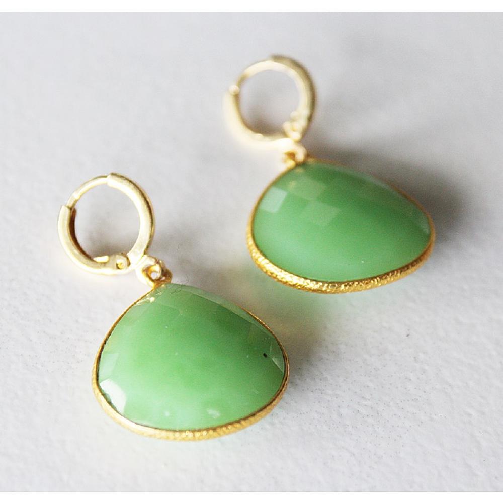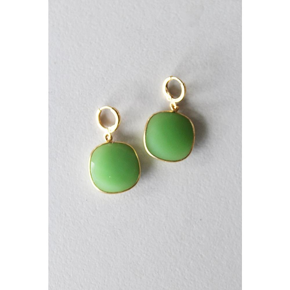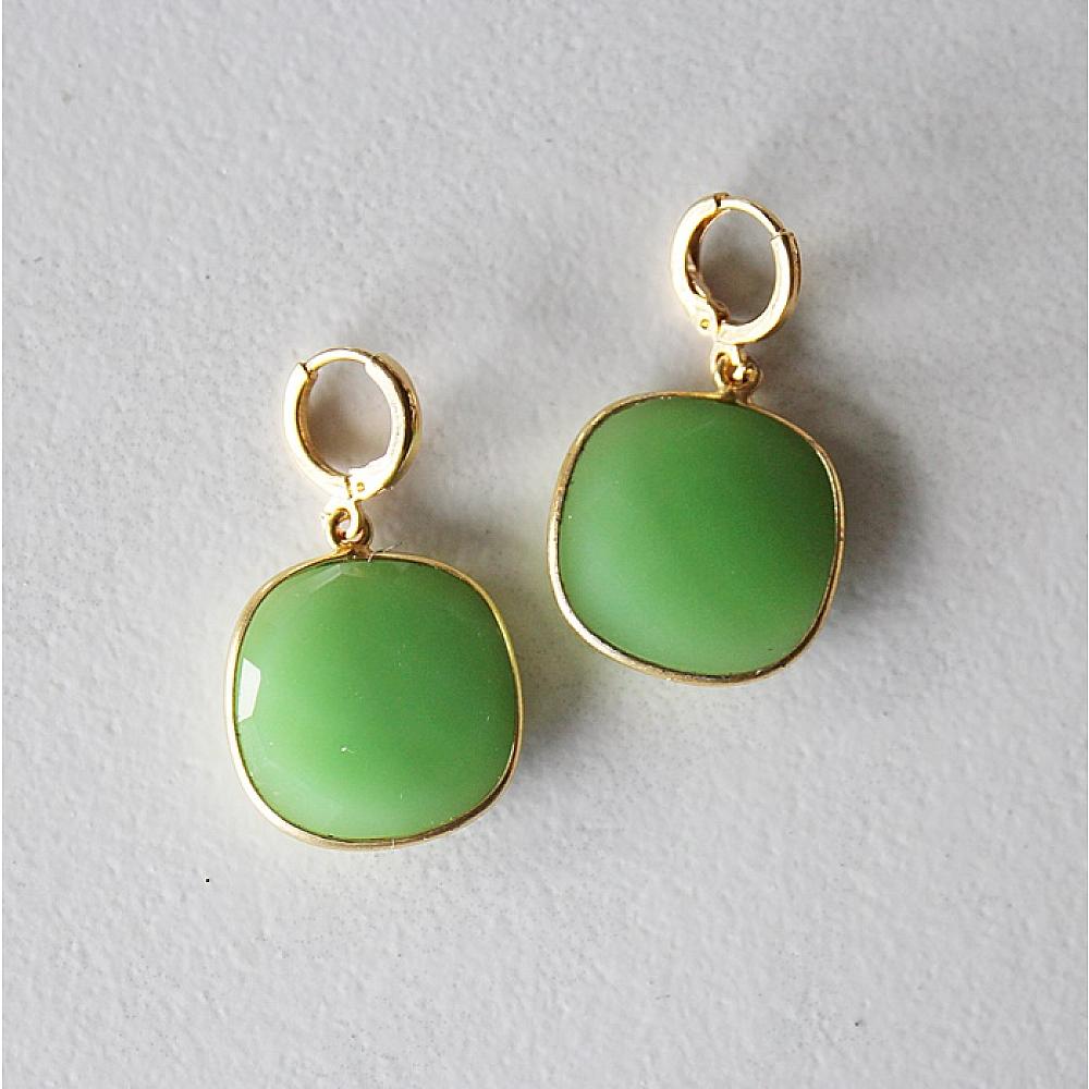 * These sweet and simple earrings come in two shapes - tear drop (only 1 pair), and a rounded square shape. They dangle from 14kt gold fill leverback earwires. The perfect drop of color for Spring.