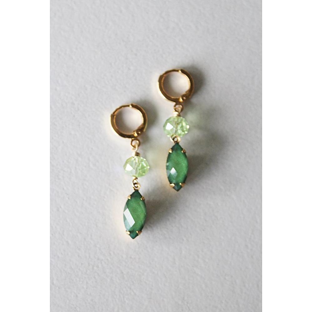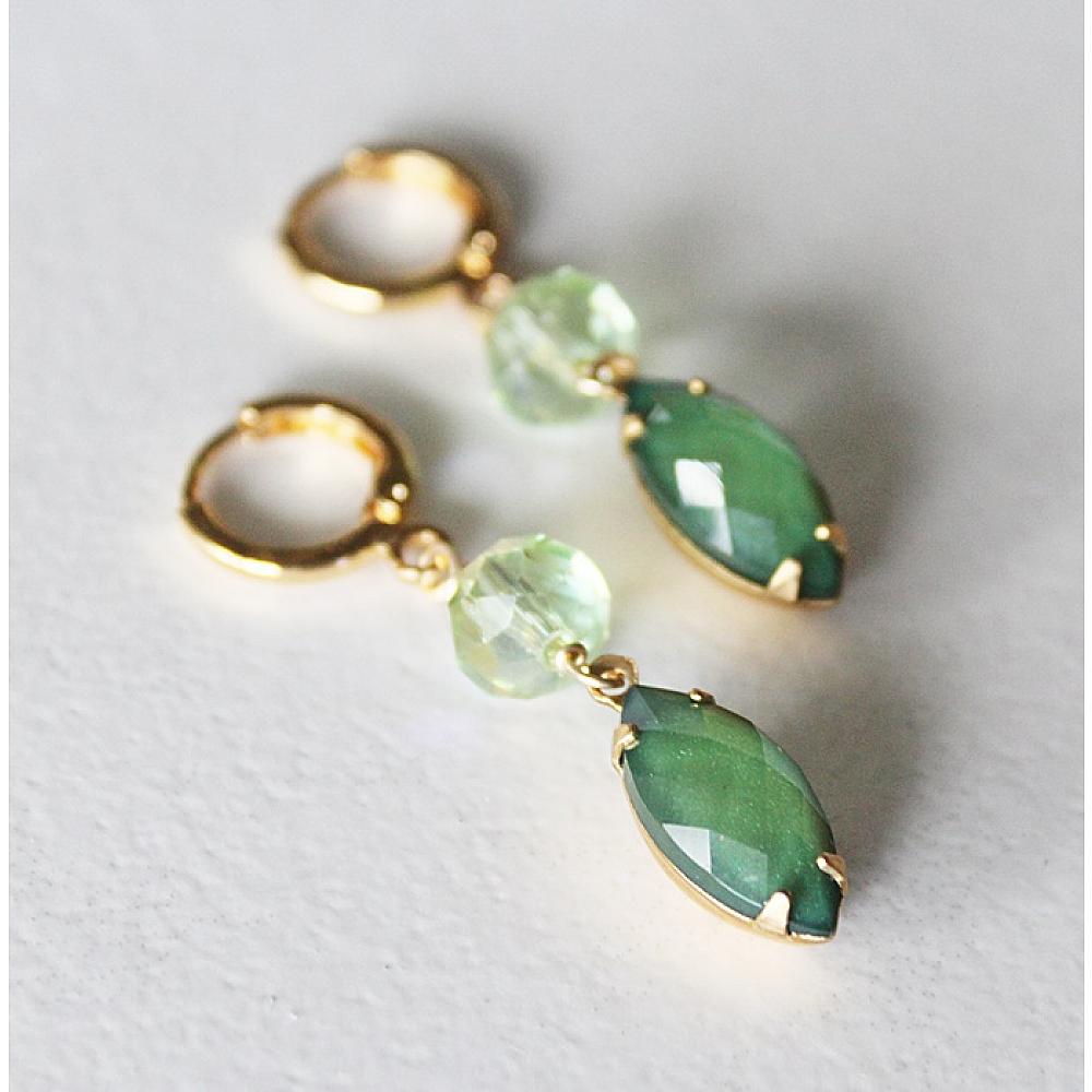 * Super sweet and on so green! I love these adorable green, diamond shaped cabachons. I've paired them with light green Czech glass and hung them on 14kt gold leverback earwires. The perfect bit of Spring, Irish Spring!