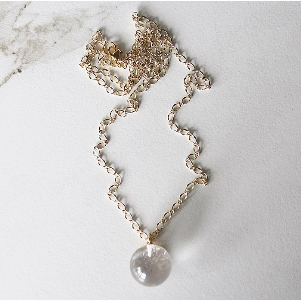 * A simple ball shaped Clear Crystal Quartz dangles from a simple 24k gold plated chain. This is a fun statement piece that can be layered up or worn separately. It's so lovely. I've secured the necklace with a gold lobster clasp - could be worn doubled up at a 15" length.