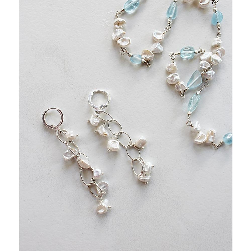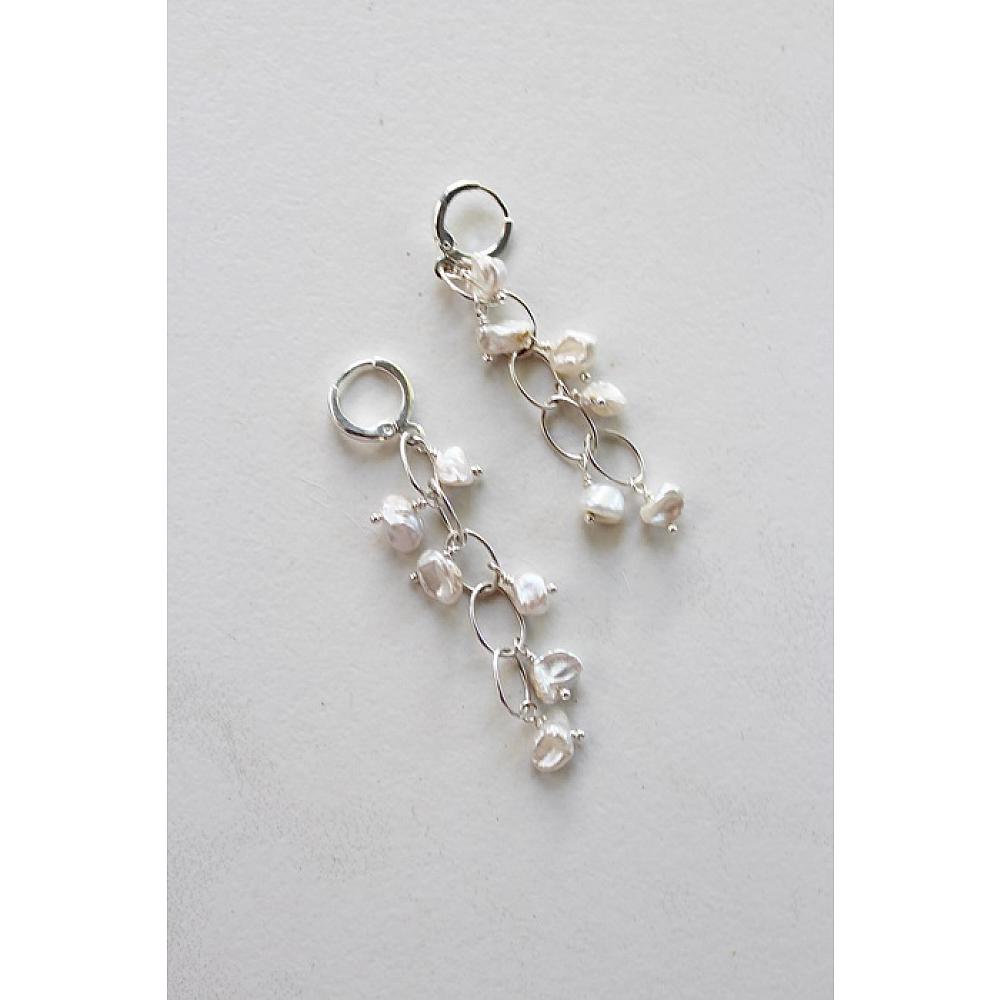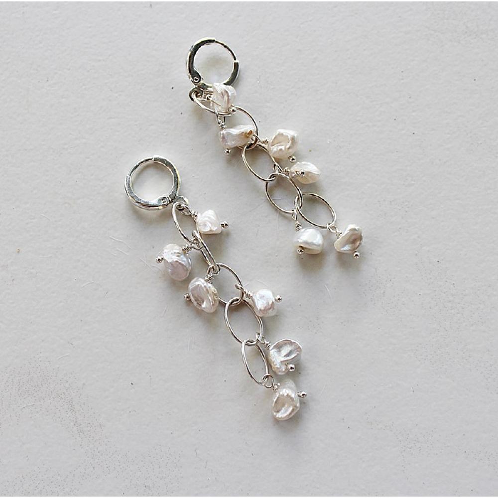 * Individual, handwired Keishi fresh water pearls cascade from loops of Sterling Silver. These sweet, and dangly earrings pair perfectly with the Skye Necklace and are the perfect go-to earrings. The earrings are hung on sterling silver leverback earwires.