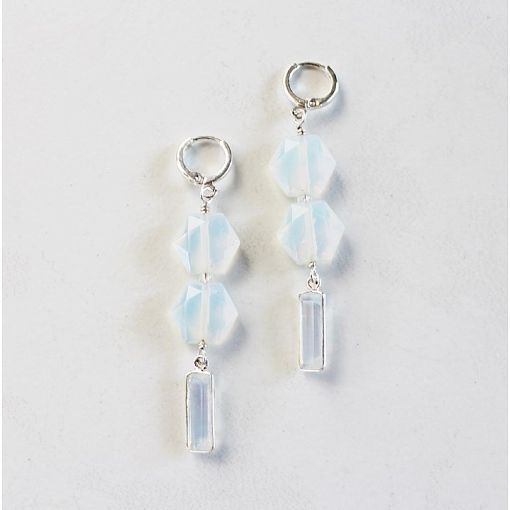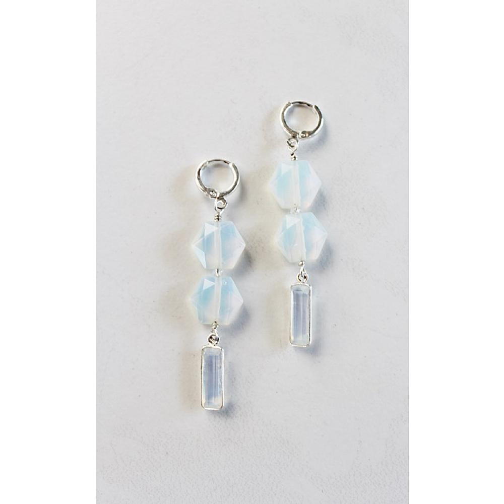 * Gorgeous cut Opalite beads top a sterling silver encased rectangle pendant on these whispery sweet earrings. I've hung the earrings on sterling silver leverback earwires. These little beauties are luminous and sweet.