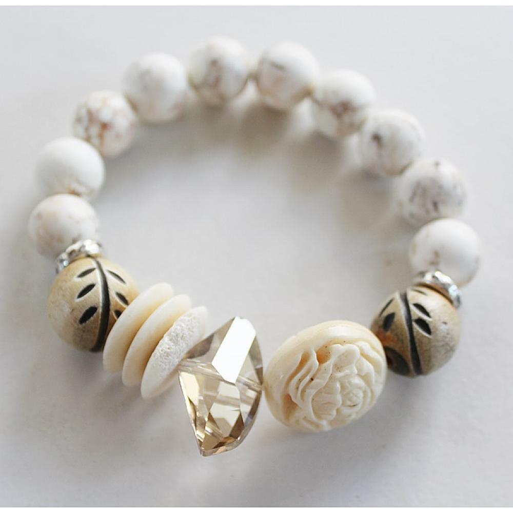 * I can't even begin to tell you how fun it is to make these beauties. This Driftwood Stack is so pretty - very muted colors. Think sand and driftwood. All of these bracelets are made from semi-precious stones, bone, glass, vintage glass, wood, and some metals. These are a statement all by themselves, or stack a couple.