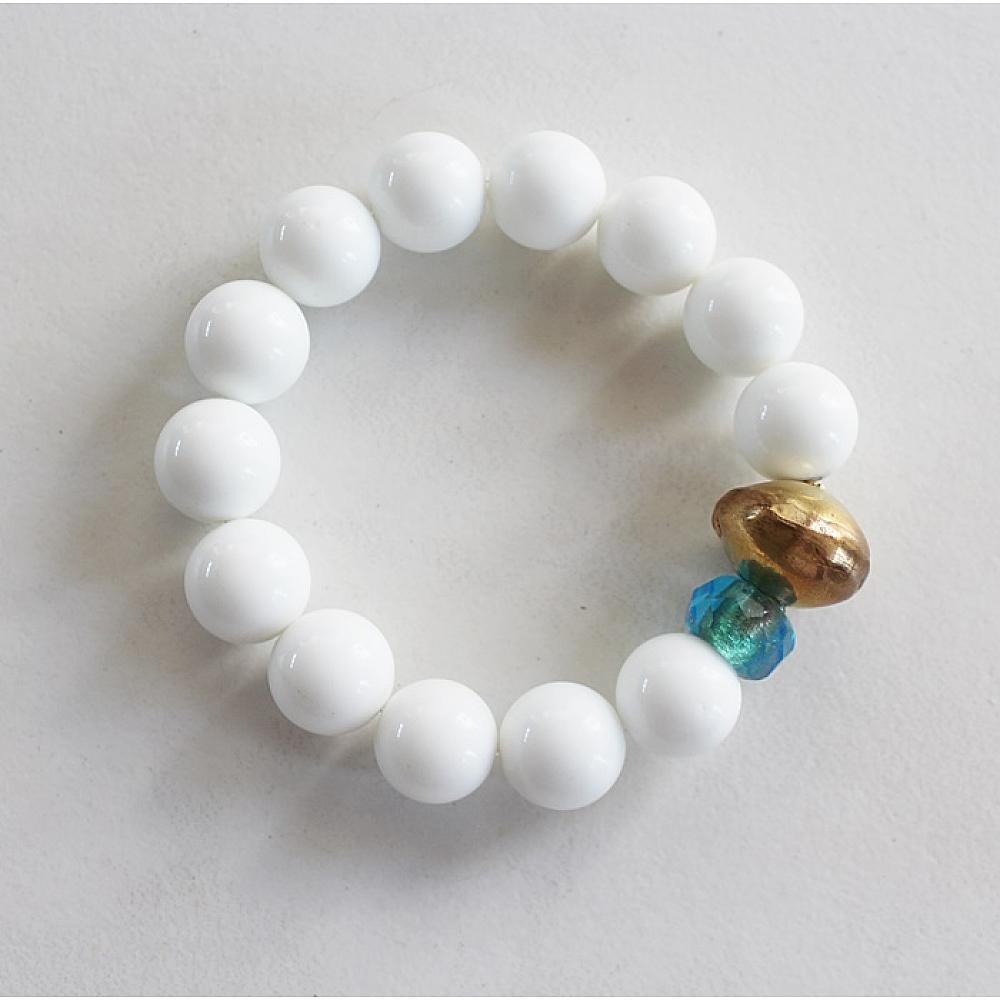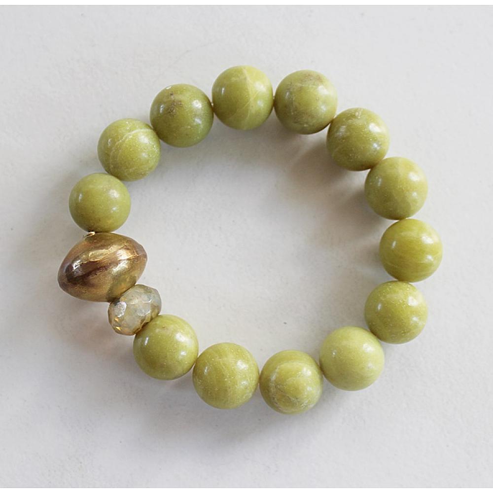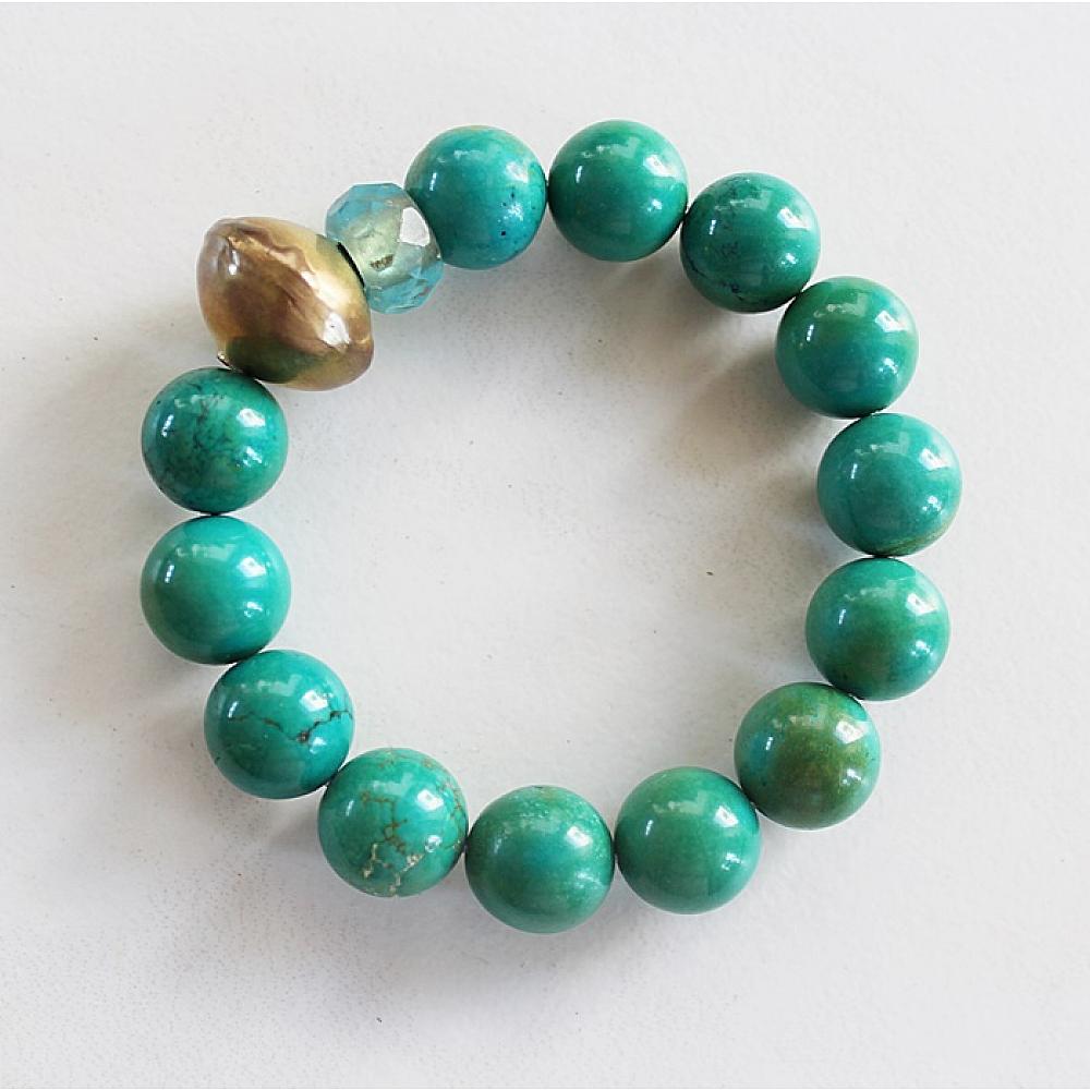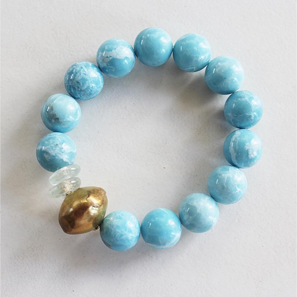 * This group of stacks are simple, yet gorgeous. All of these beauties are made from semi-precious stones, brass, and glass. Choose from Larimar, Lime Jade, White Agate, and Turquoise. They are strung on heavy duty elastic - simply roll on and off to keep the shape.