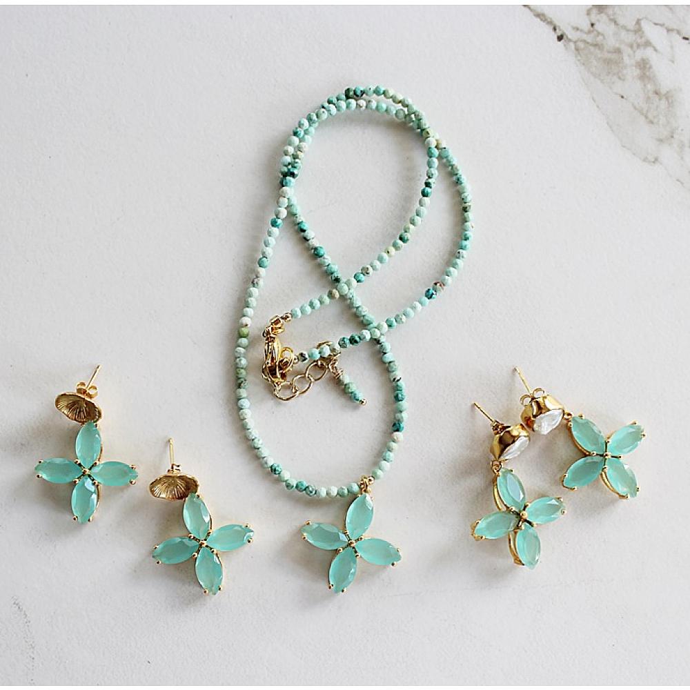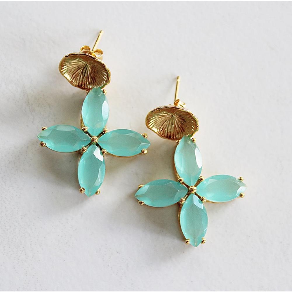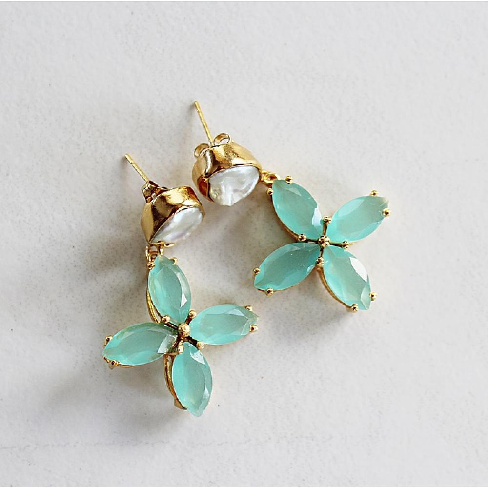 * A beautiful compliment to the Caicos Necklace - matching earrings. Gorgeous Chalcedony Flower Earrings - choose your earwire. Choose from gold posts, fresh water pearl, or simple leverback earwire.