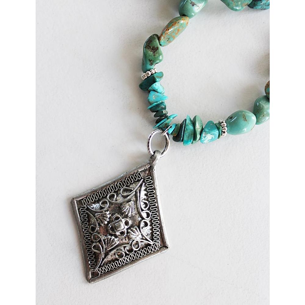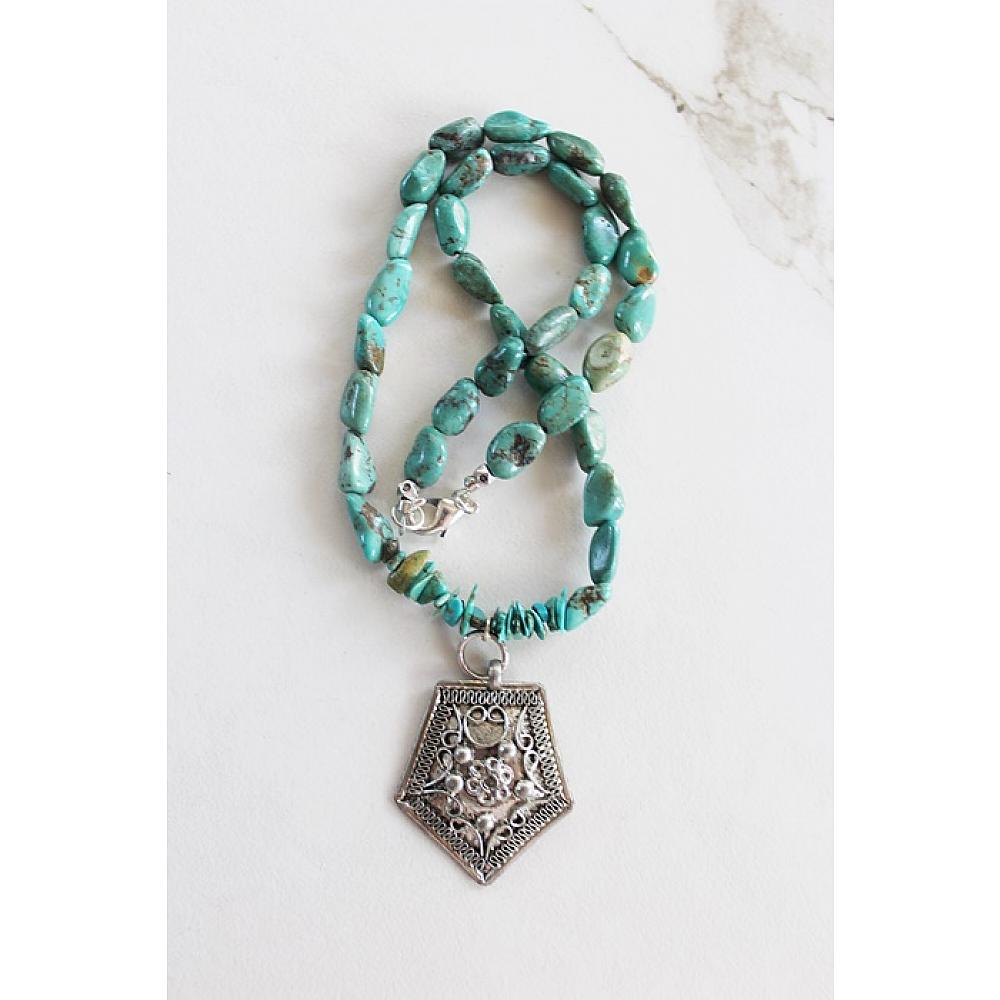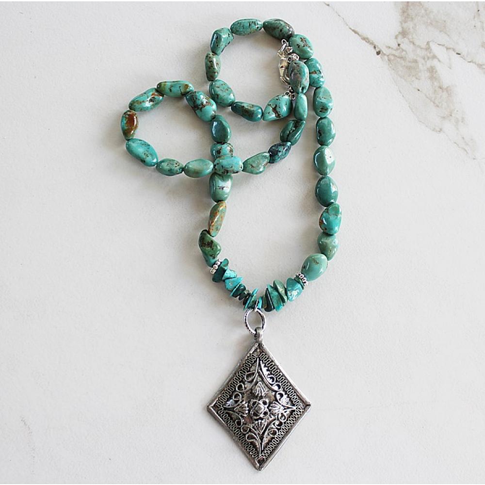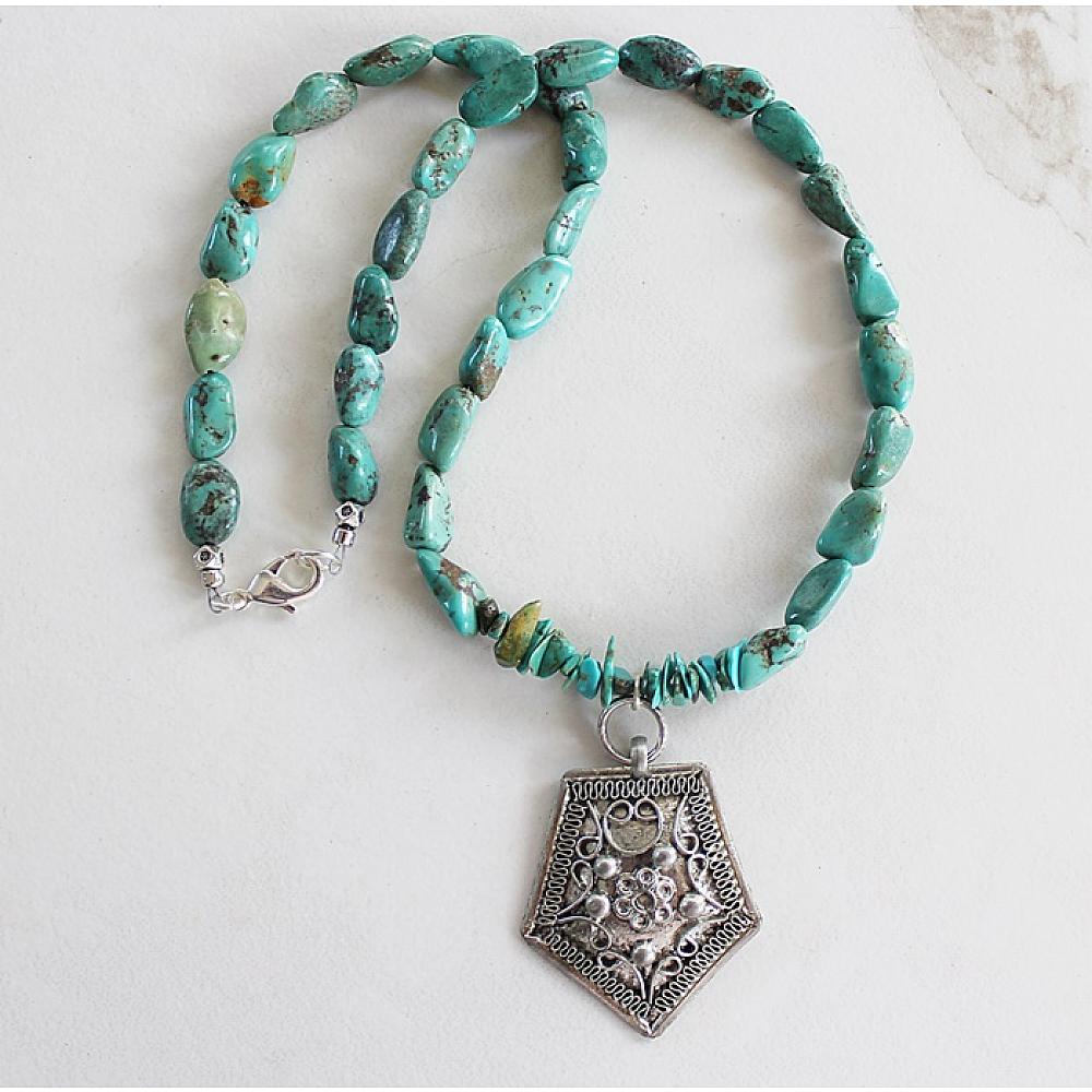 * Gorgeous Turquoise pebble beads are strung together on heavy duty wire and is the anchor for these unique Sterling Silver Pendant. Two versions to choose from. I've secured the necklace with a silver lobster clasp.