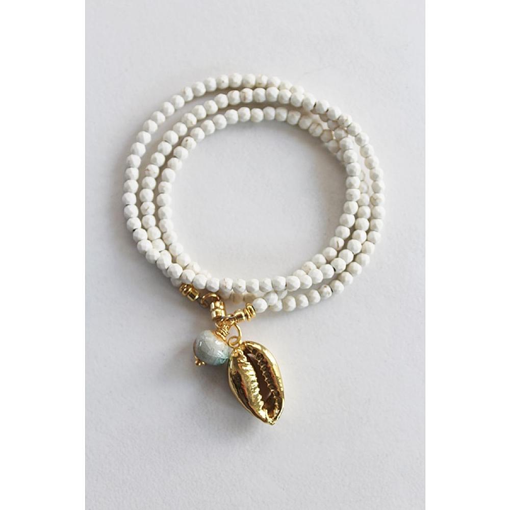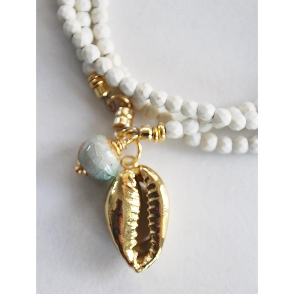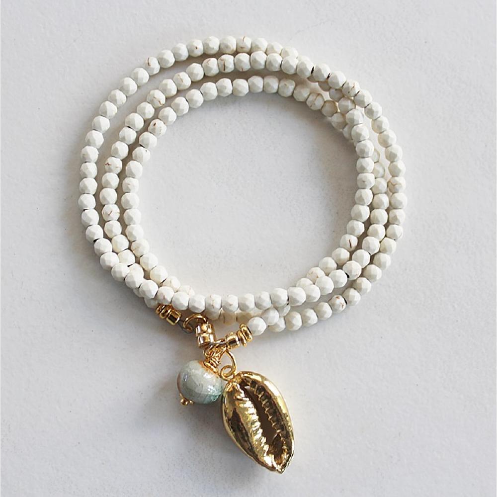 * I do love a convertible piece of jewelry - this one is Summer perfection. A length of riverstone is strung on heavy duty wire and is secured with my signature magnet clasp. Attached to the bracelet/necklace is a gold plate clam and aqua accent bead. Wear it as a wrap bracelet or a necklace - either way, it's fabulous.