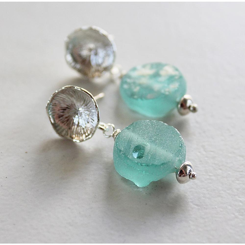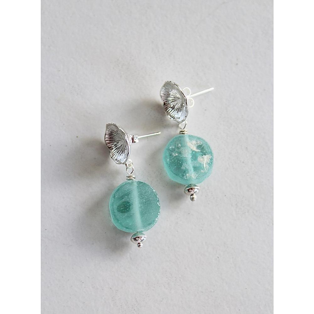 * Ancient Roman Glass, so old and so pretty. I love these simple earrings - just know, that each of the ones I have on hand are not all the same shape. Most are round, like these, some bigger. Please inquire if you desire to see the other pairs I have. I've hung them on simple silver post style earrings. They are quite sweet and simple.