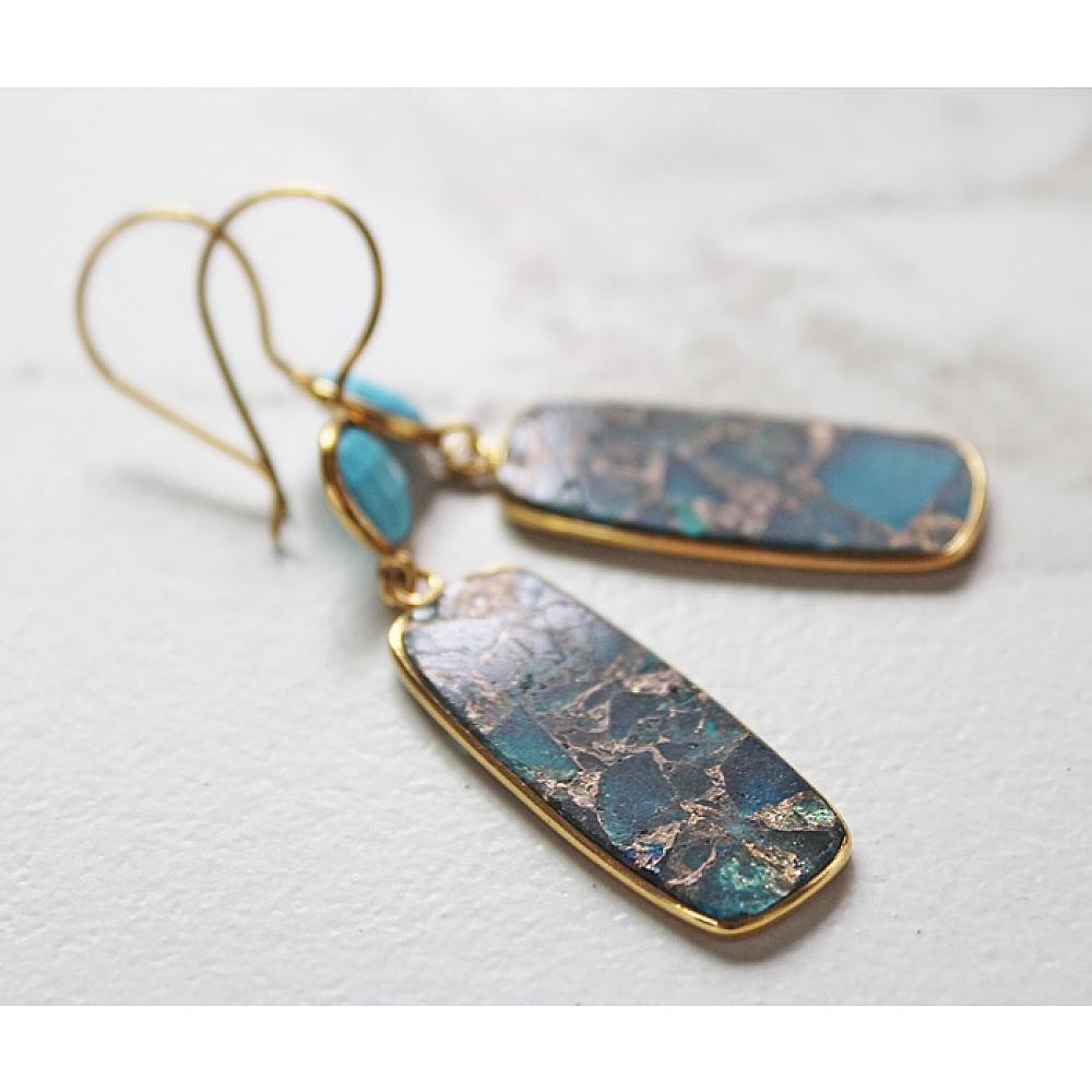 * I don't think the photos accurately catch the beauty in these earrings. They are almost like looking at a mosaic window. The color is absolutely gorgeous and I've paired these with turquoise and gold earwires. They are stunning.