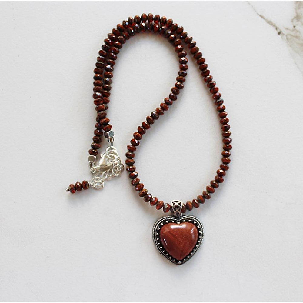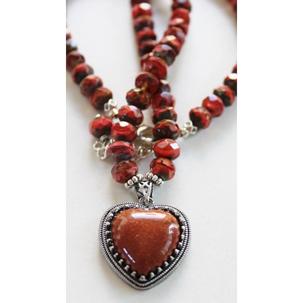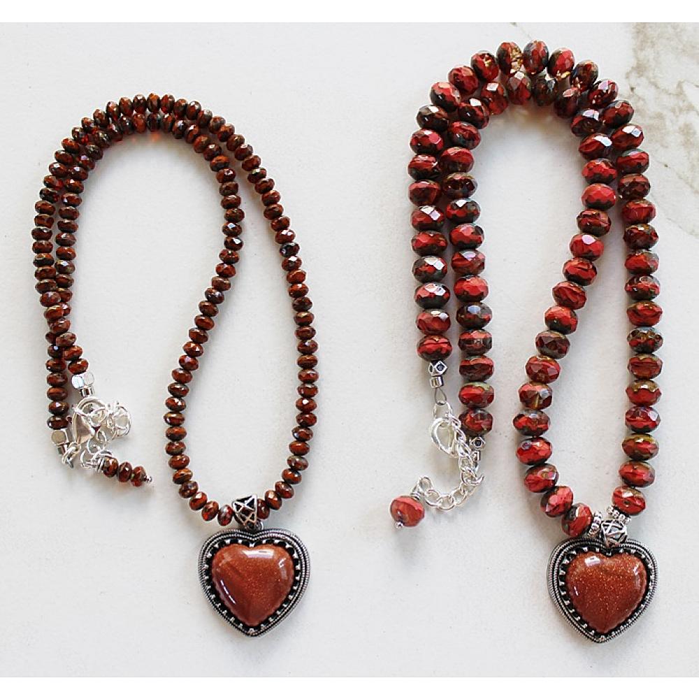 * This sweet Sunstone Heart pendant has been sitting in my drawer for a bit. While shuffling thru my drawers of beads, Voila', there they were. In two different sizes. Czech glass became the anchor for this sweet pendant. I wired the beads on heavy duty wire and added a lobster clasp and a length of chain for extra length. The perfect Summer necklace.