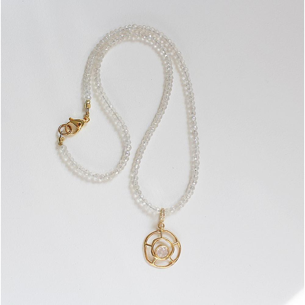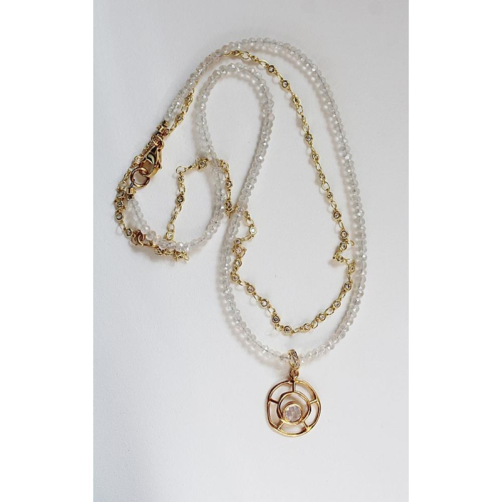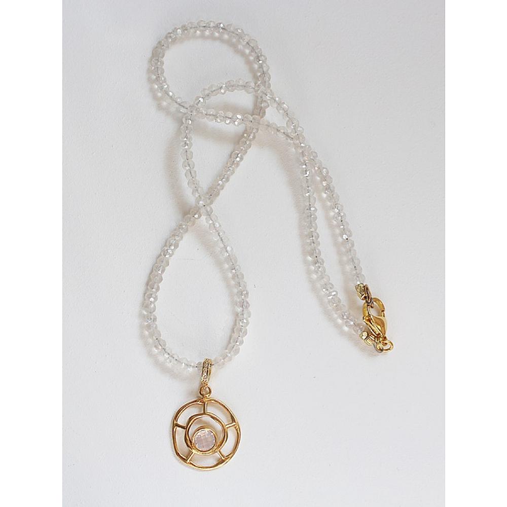 * So gorgeous . . . cushion shaped, faceted Moonstones that anchor this adorable round pendant that is studded with an opalite stone. It's truly stunning. The necklace is secured with a gold lobster clasp and includes an extender with stone end.