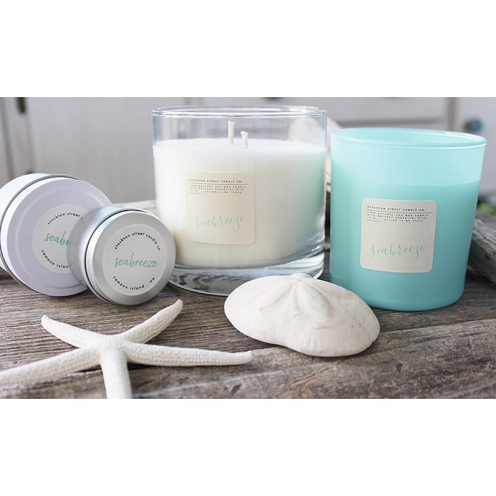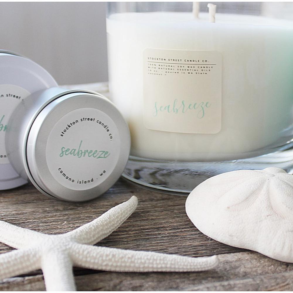 This candle is 100% soy wax and environmentally friendly fragrance and hand poured by me in WA State. The candle is 11 oz. in the aqua jar, 18 oz. in the clear glass. Always trim your wick to 1/4" before burning, and never let your candle burn for more than 4 hours. Detailed instructions on the bottom of the glass jar.