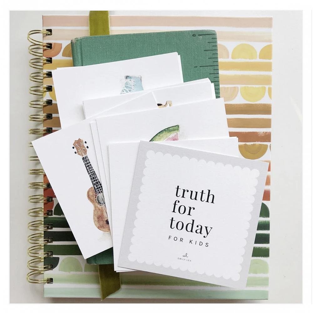 * This special set of Truth for Today cards was created especially with kids in mind! Charming illustrations paired with favorite Bible verses will encourage our youngest friends to fill their minds with beauty and truth. Display your cards on a pinboard, in picture frames, taped up to a mirror, tucked into a notebook or lunch box, or shared with friends. Useful for daily or weekly memory verse reminders.