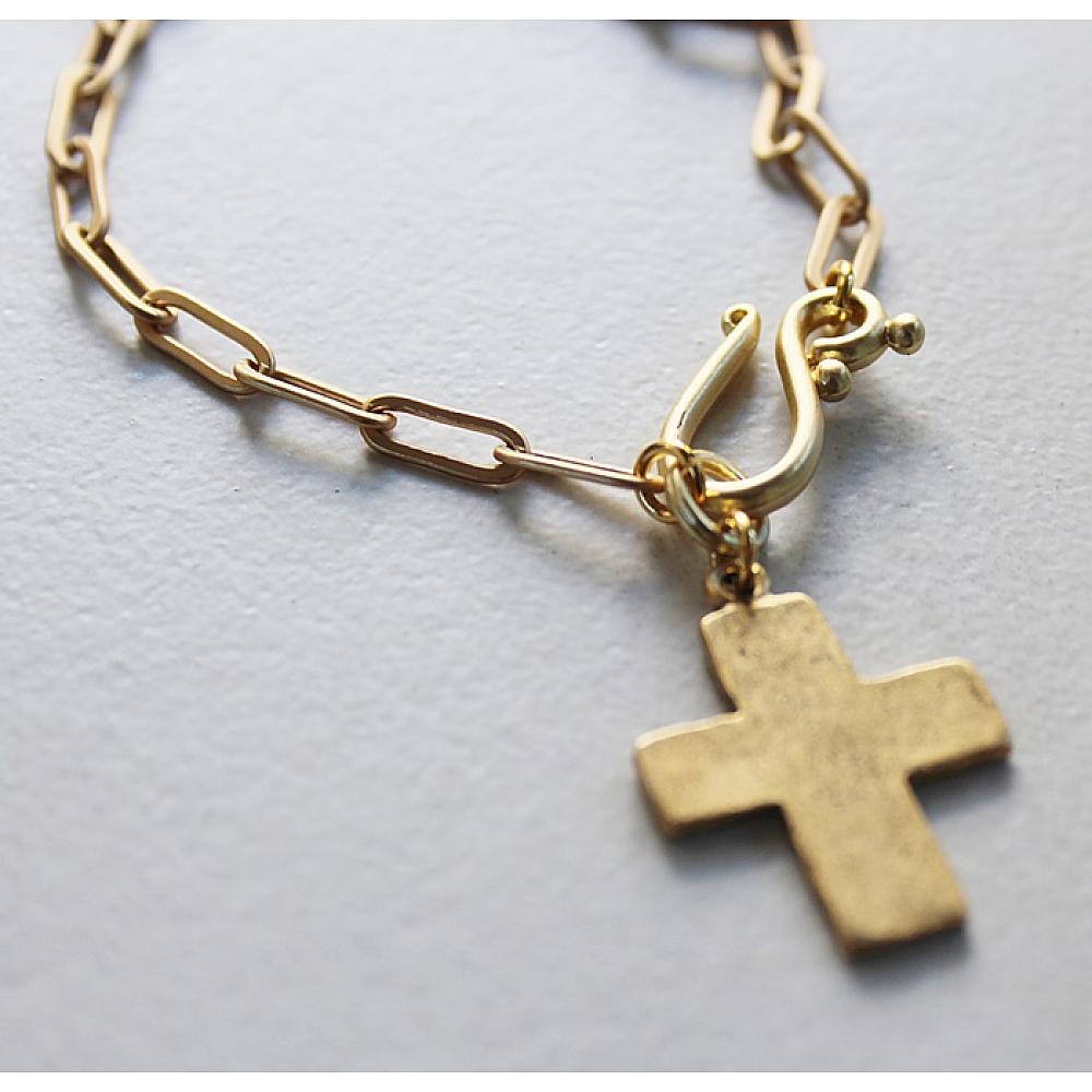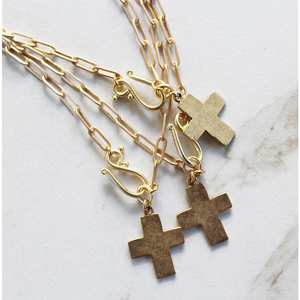 * As I mentioned, I had this slated for my Fall Collection long before the death of Charlie Kirk. Faith can be a divisive subject, but I want it to unite us for the greater good. Introducing the Revival Cross Necklace. This simple, brushed gold cross dangles from a length of paperclip chain in Hamilton Gold Plate. The lovely s-shaped clasp just adds to keep this necklace delicate and sweet. Offered in two lengths - 17" or 18". Choose your length from the drop down menu. PLEASE NOTE: I have pre-sold all the inventory I had on hand - more coming by 9/29.