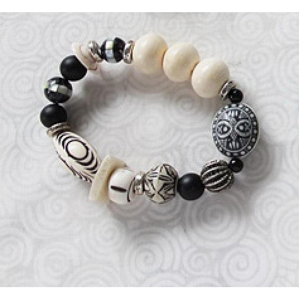 * D - Onyx, MOP, African Fair Trade Beads, Silver, Bone
