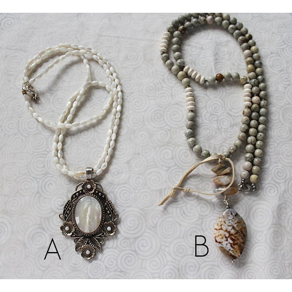 * A - MOP Convertible Necklace - wear it doubled up as shown, or wear it long. MOP rice beads and a gorgeous MOP Pendant - 18" doubled up or 36" long.