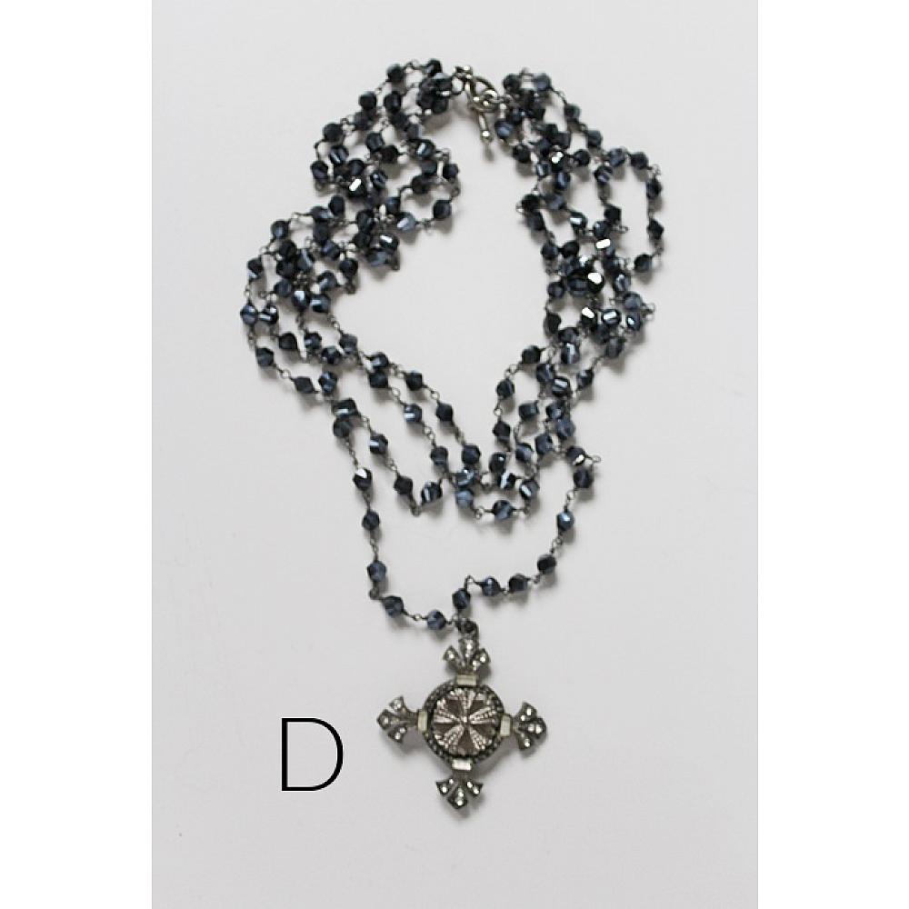 * D - Czech Midnight Blue Glass Beads - 4 Layers/Ornate Cross/Silver Toggle Set - Longest length: 22"