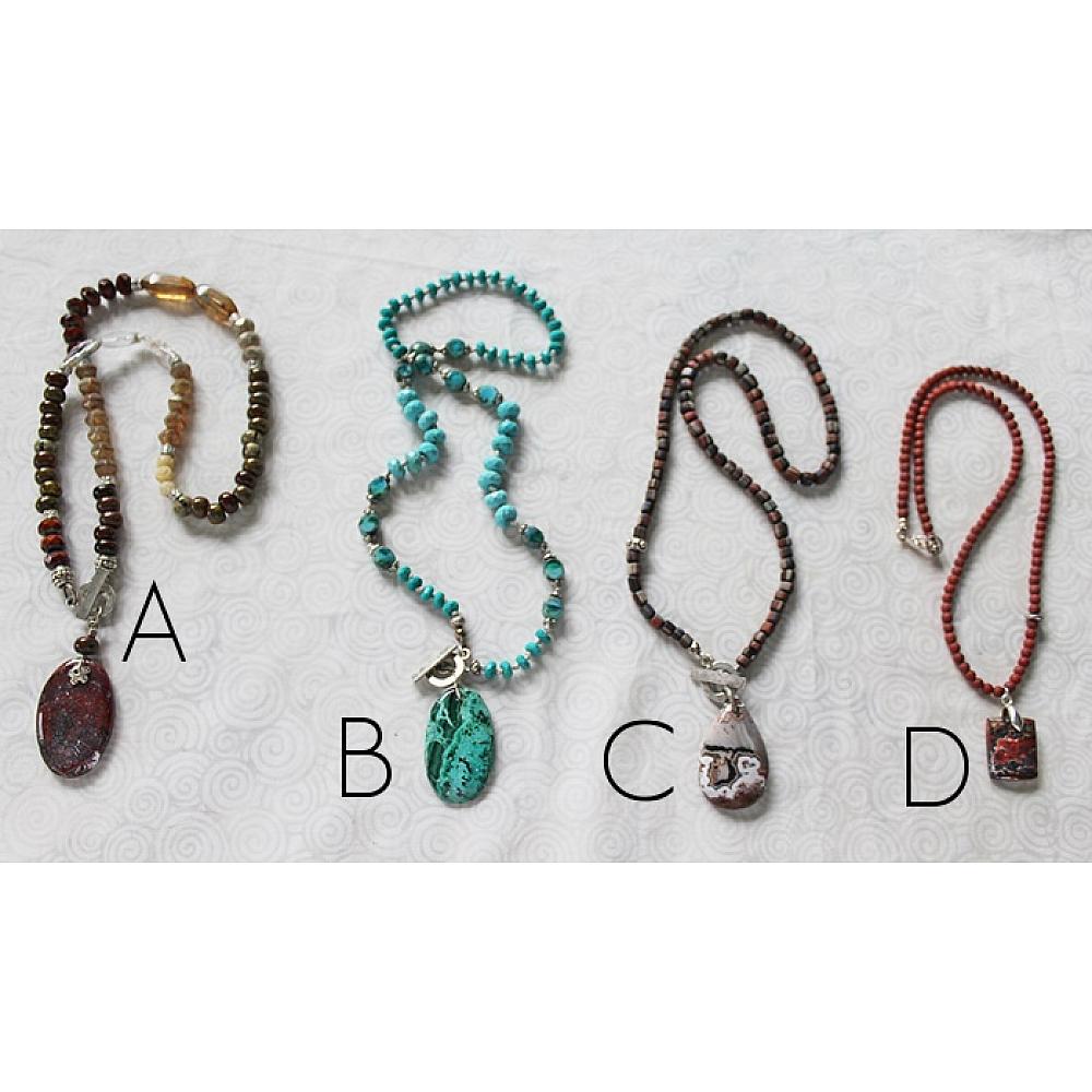 * B - Hand tied Turquoise/Czech Glass/Chrysocolla Pendant/Silver Toggle Set - 18"