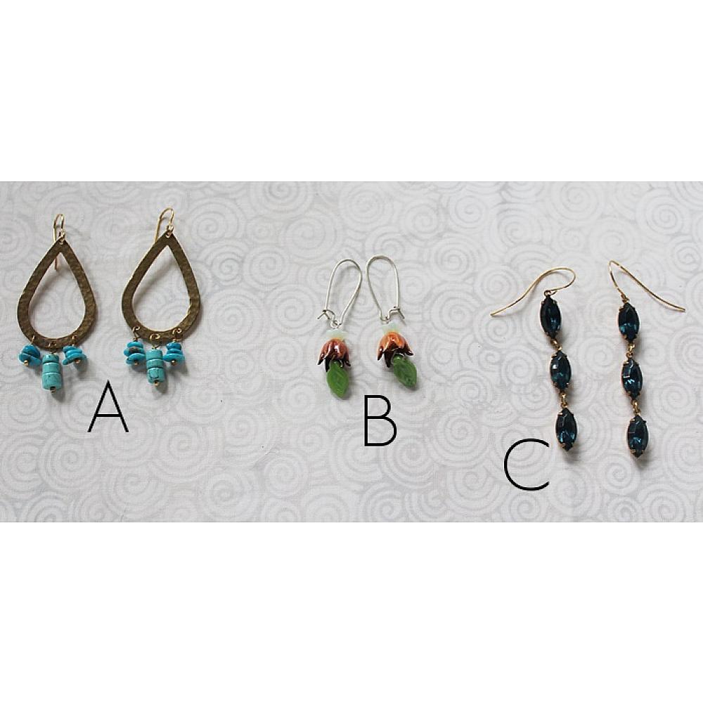 * B - Enamel Flower Tops/Czech Glass Leaf/Sterling Silver Kidney Shaped Earwires - 1.75"