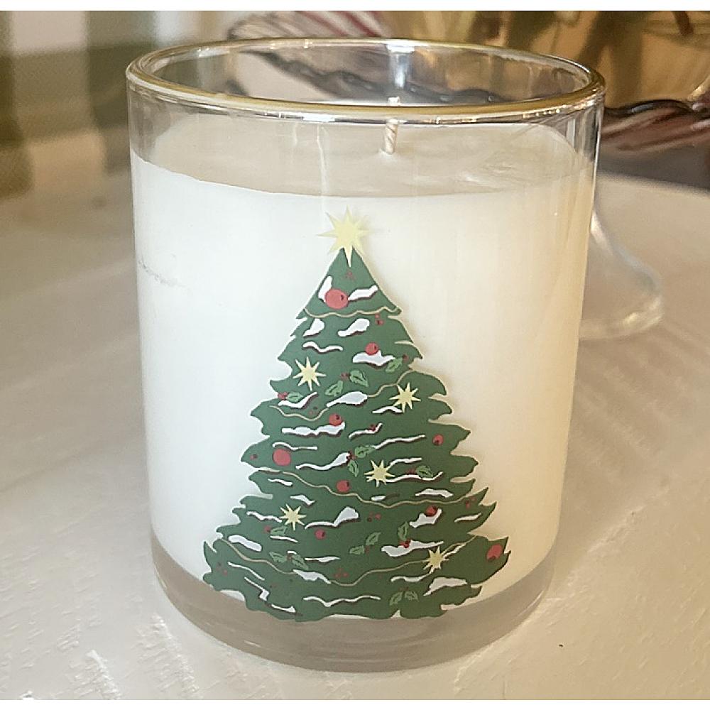 * It's that time of year again. The smell of Pine wafts its way through your home, celebrating the Season. It's back again, my friends. My favorite scent of the season. This sweet candle comes in three different sizes - select your size from the drop down menu. The large red glass is 16oz, the Tree glass is 11oz, and the small cache pot is 4oz.