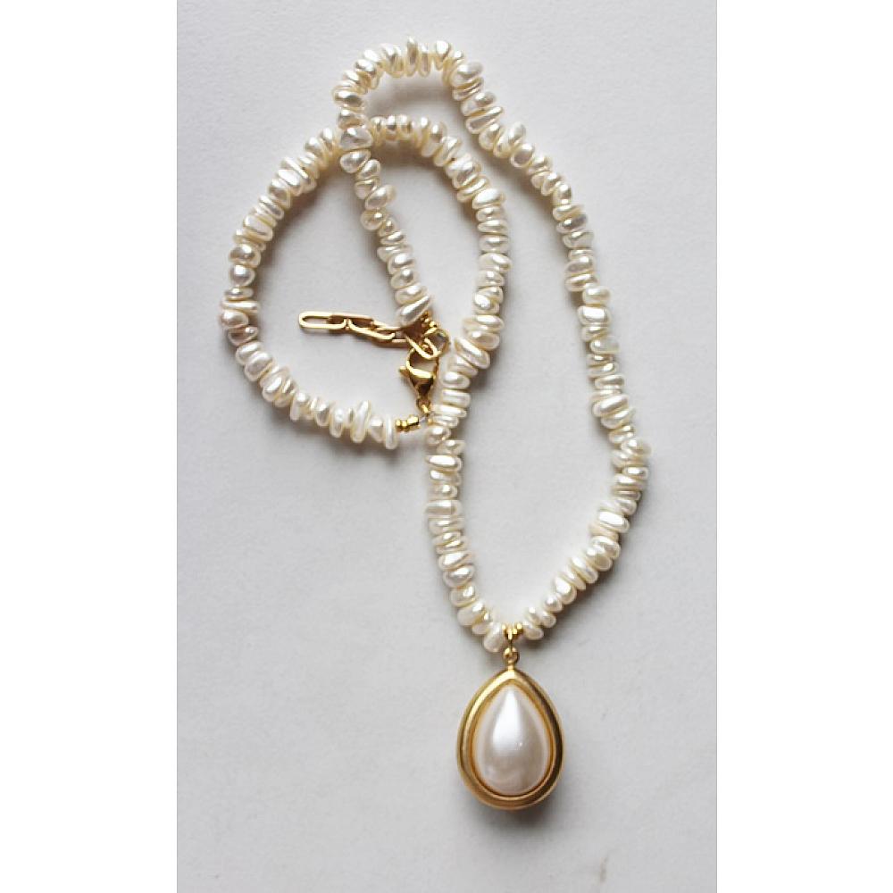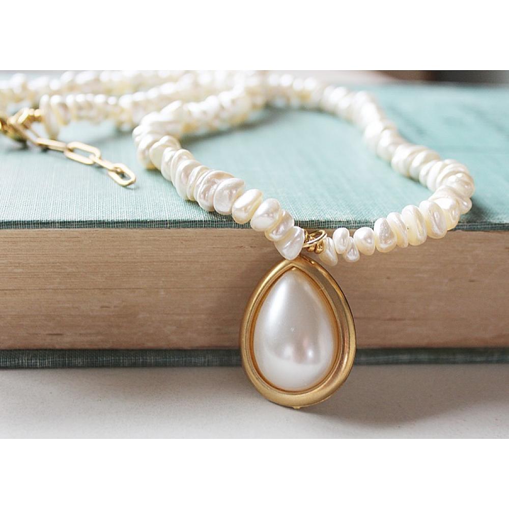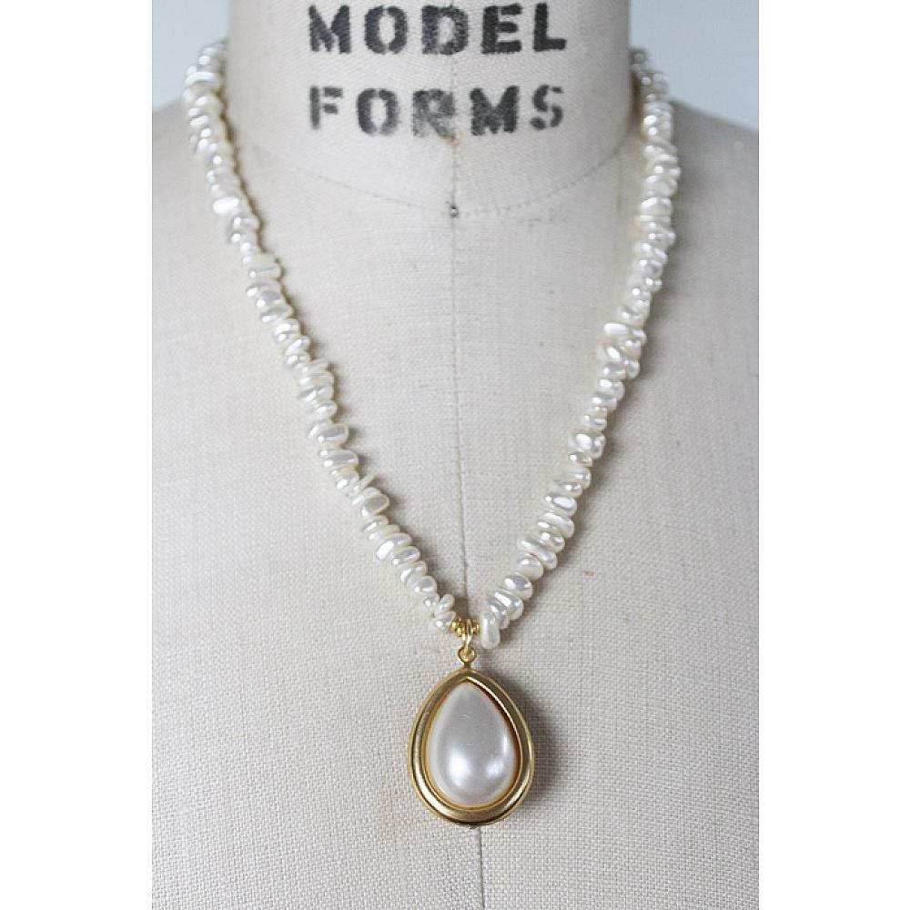 * Gorgeous, vintage creamy white pebble pearls come together on this beautiful necklace with a unique Vintage pearl and gold pendant. The necklace is secured with a lobster clasp.