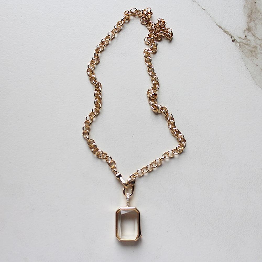 * This is the sweetest necklace. A lovely glass locket - add some glitter, add a special note . . . there's so many choices. This gold plated necklace features a sweet CZ bail and a lobster clasp. Such a sweet necklace that would make the perfect gift.