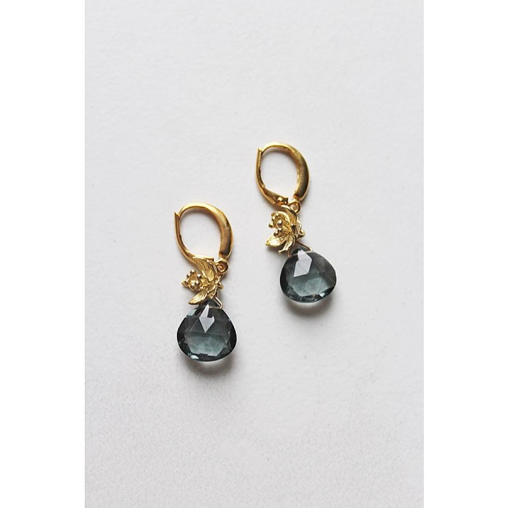* Gorgeous, faceted blue topaz briolettes dangle from a 14kt gold fill leverback earwire. A sweet flower charm dangles atop the bead. Simple and sweet - the perfect gift.