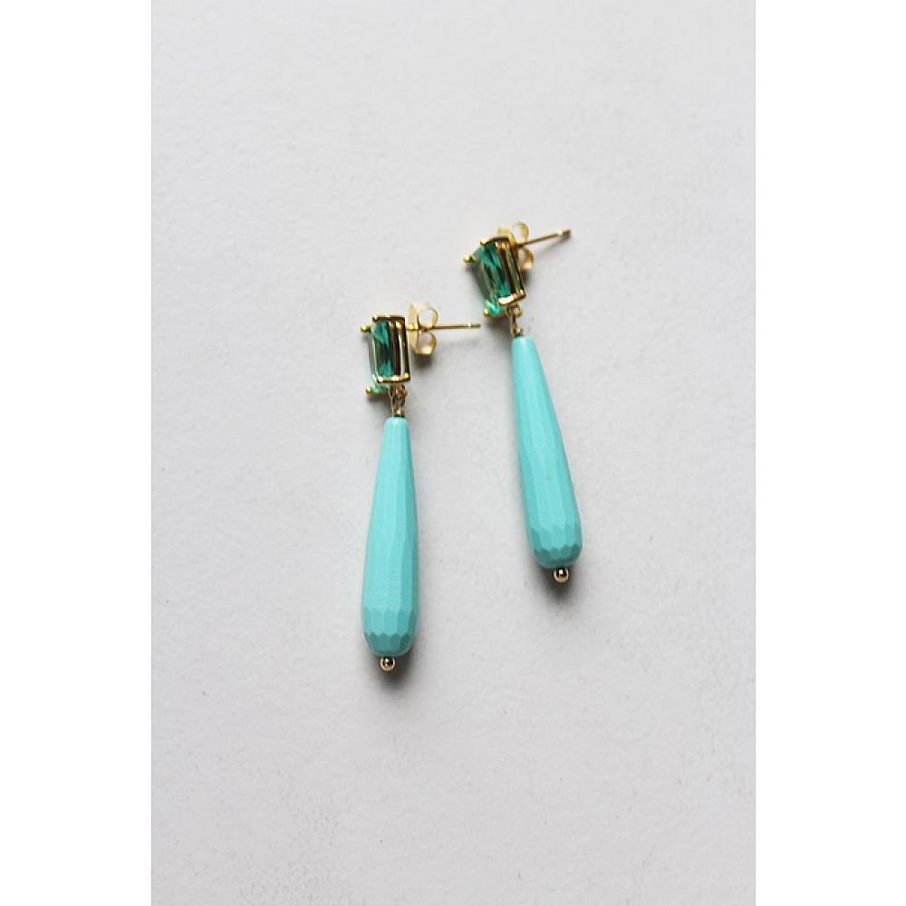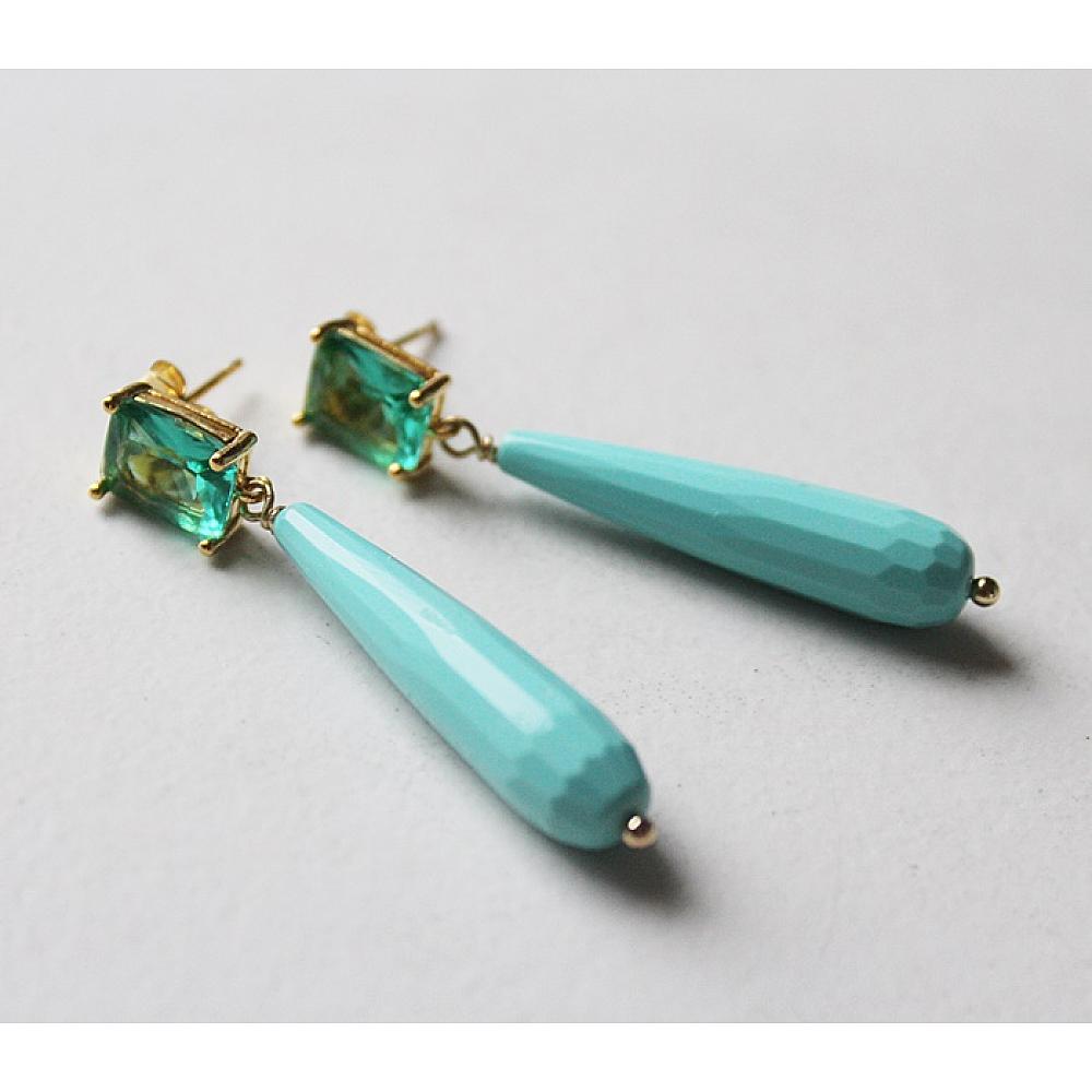 * Gorgeous faceted Turquoise drops dangle from a sweet Green Chalcedony Post Style Earring. The green and turquoise together will remind you of coastal waters. The post is 14kt gold fill. Traveling in the near future to the beach??? These will be you go to earrings.