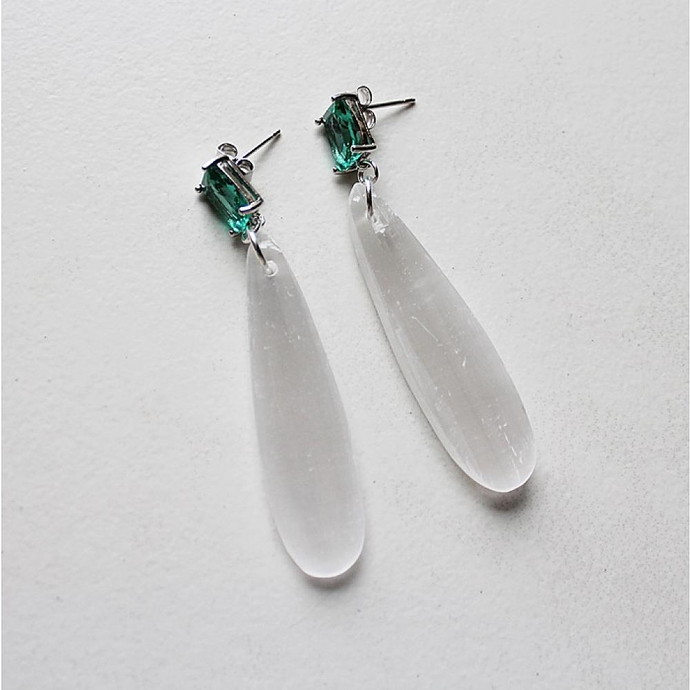 * Another gorgeous dangle featuring Green Chalcedony on Sterling Silver. I love this gorgeous, translucent Selenite drop. These look like Winter to me. I've hung these beauties on sterling silver and green chalcedony post style earwires.