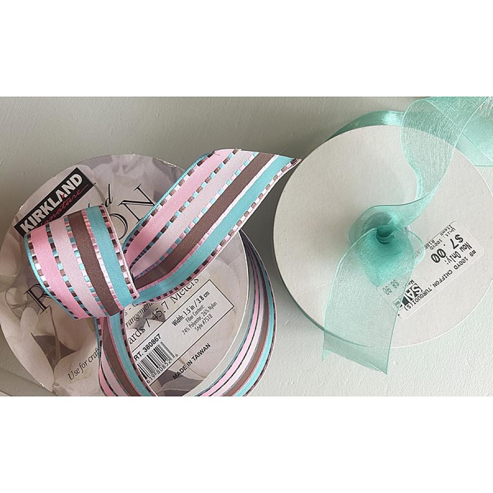 Pink/Brown/Blue wired ribbon - 1.5" wide 40 yards